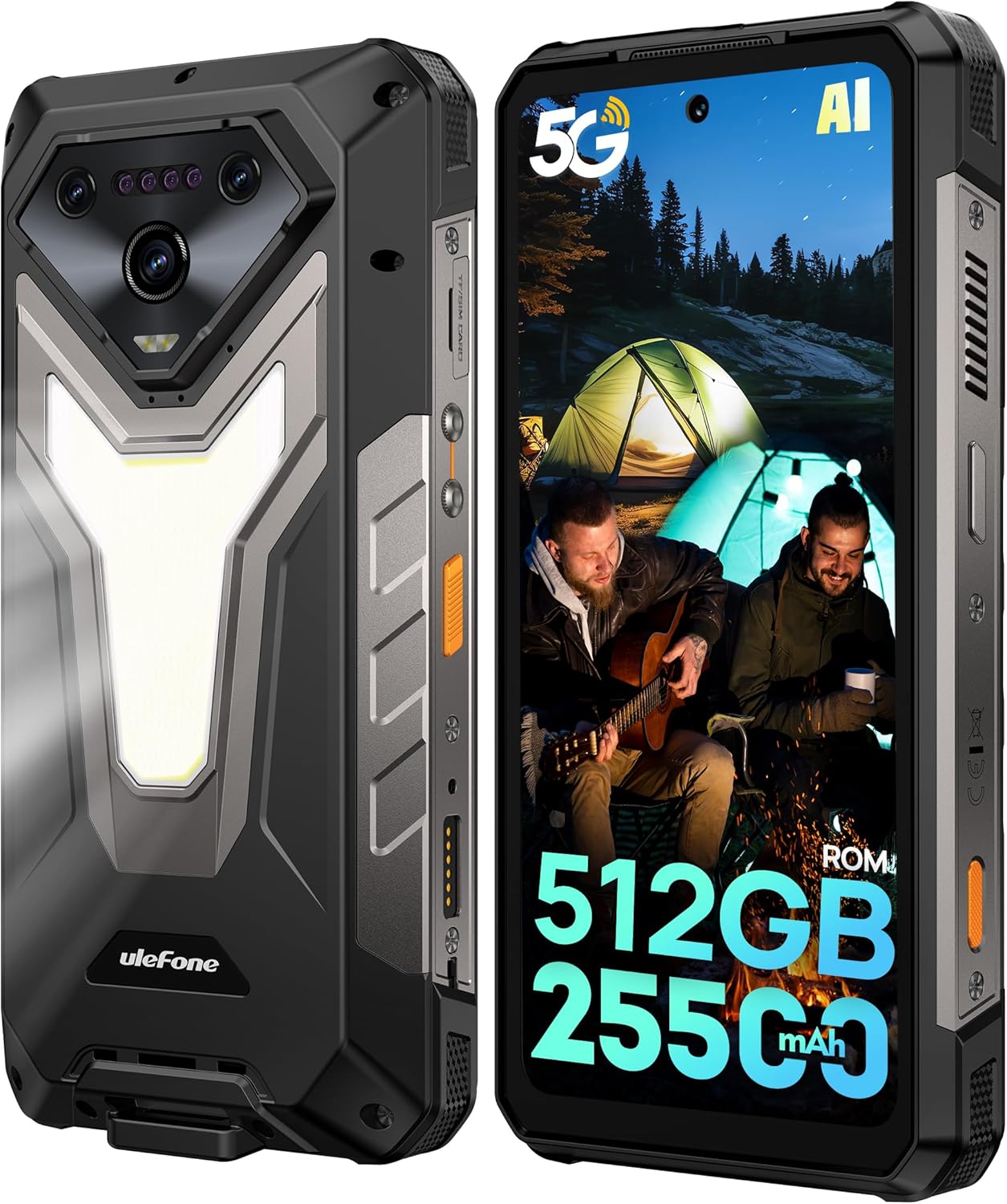 Ulefone Armor 34 5G Rugged Phone Unlocked, 32GB+512GB, 25500mAh 66W, Android 15, 6.95" 120Hz Corning Gorilla Screen, 64MP+50MP+50MP, Waterproof Phone, 1100LM LED & Warning Light/Dual 5G/Widevine L1
