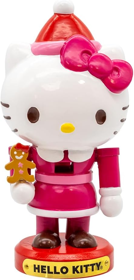 ITEM DESCRIPTION: Add holiday cuteness with this 5" Hello Kitty Miniature Nutcracker, dressed in festive red and holding a tiny gingerbread man. Perfect for collectors or small spaces, it brings playful Christmas charm to your décor.