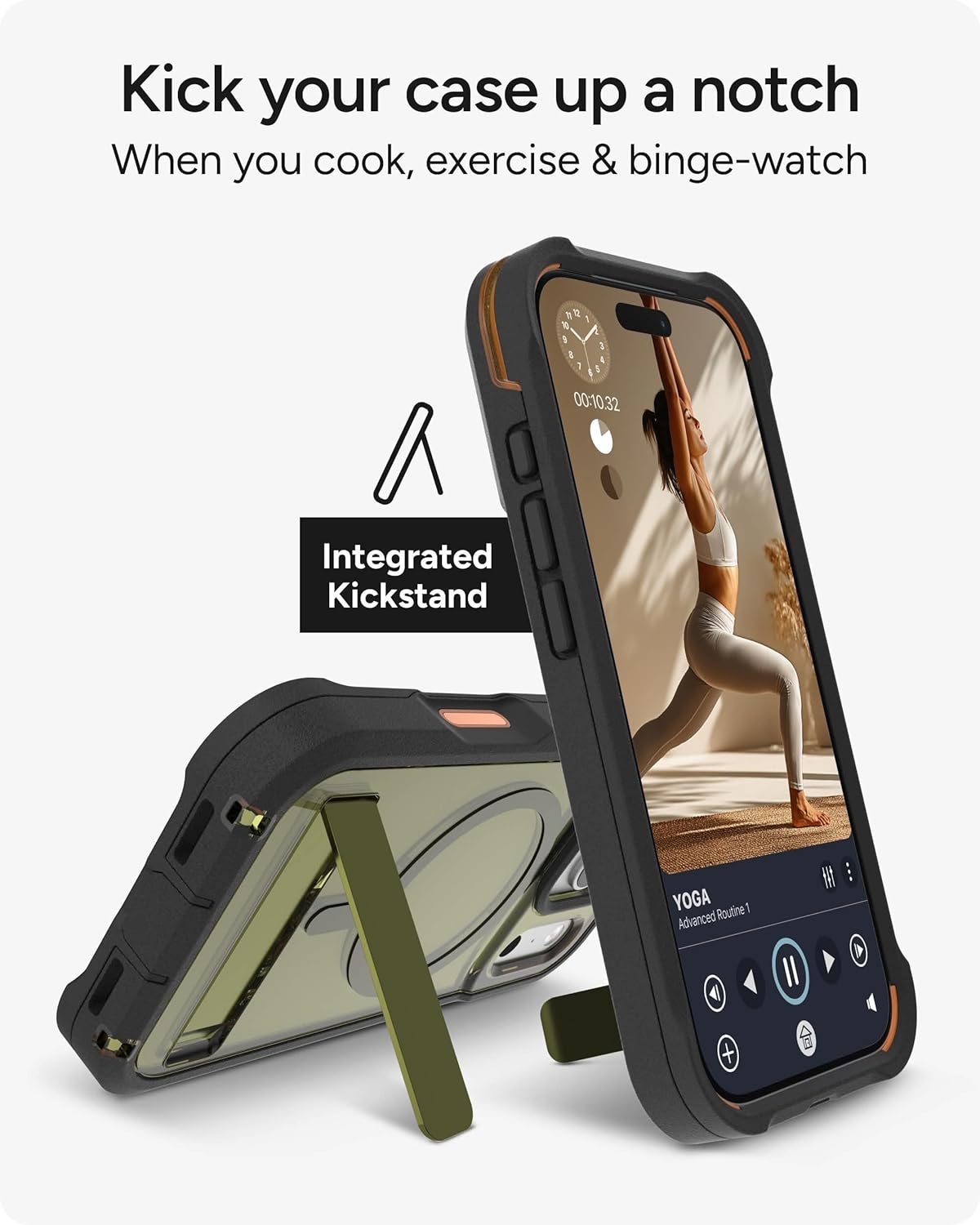 BUILT-IN KICKSTAND - Designed for hands-free use, the integrated kickstand of this magnetic iPhone case holds your phone securely in portrait or landscape mode for calls, streaming, cooking, or workouts, folding flush with the case when not in use
