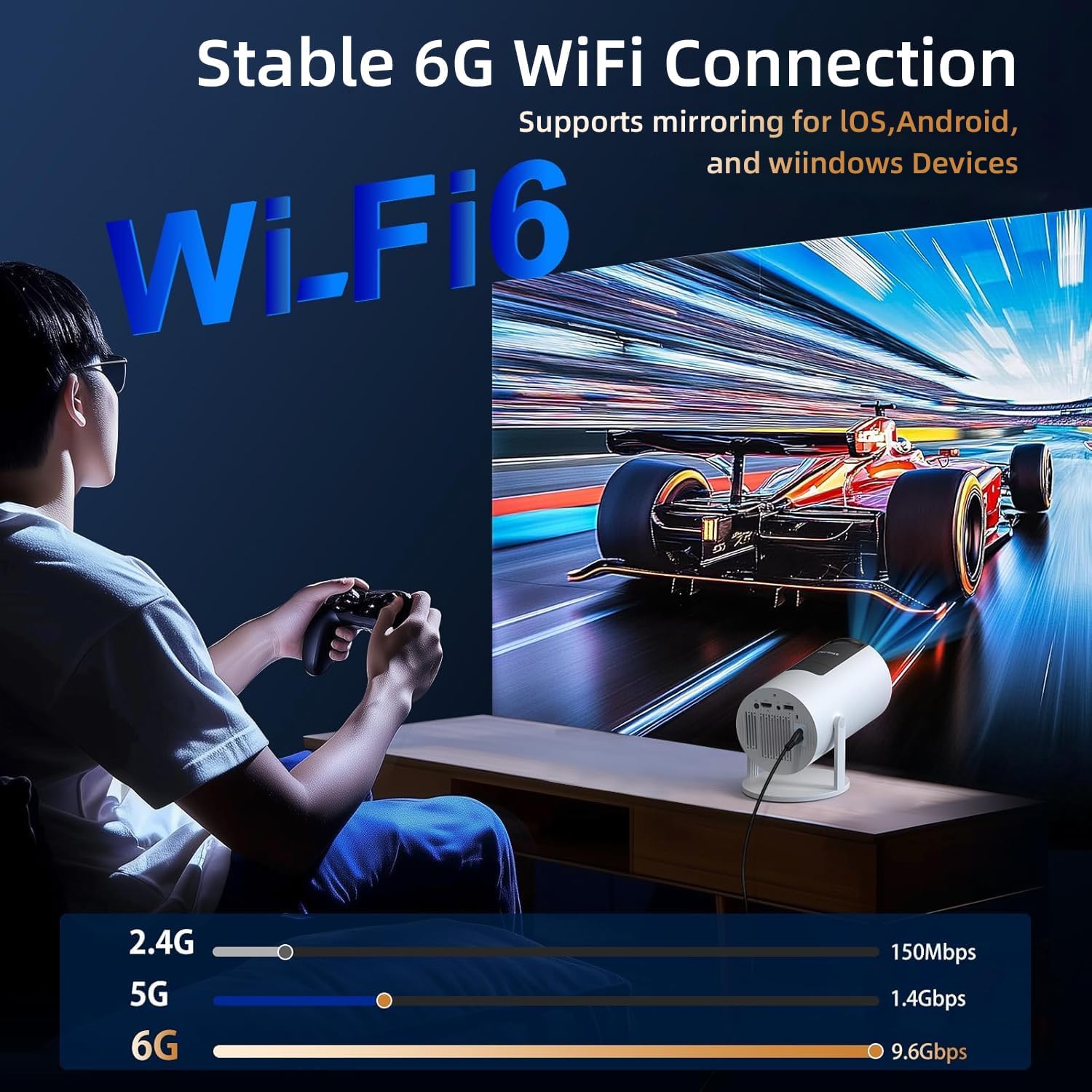 【Electric Focus】Smart Projector 4K Support, Portable Projector with WiFi 6 and Bluetooth 5.4, Smart Proyector, 5W Soundbase Speaker, 180° Rotation for Home Theater Ultra