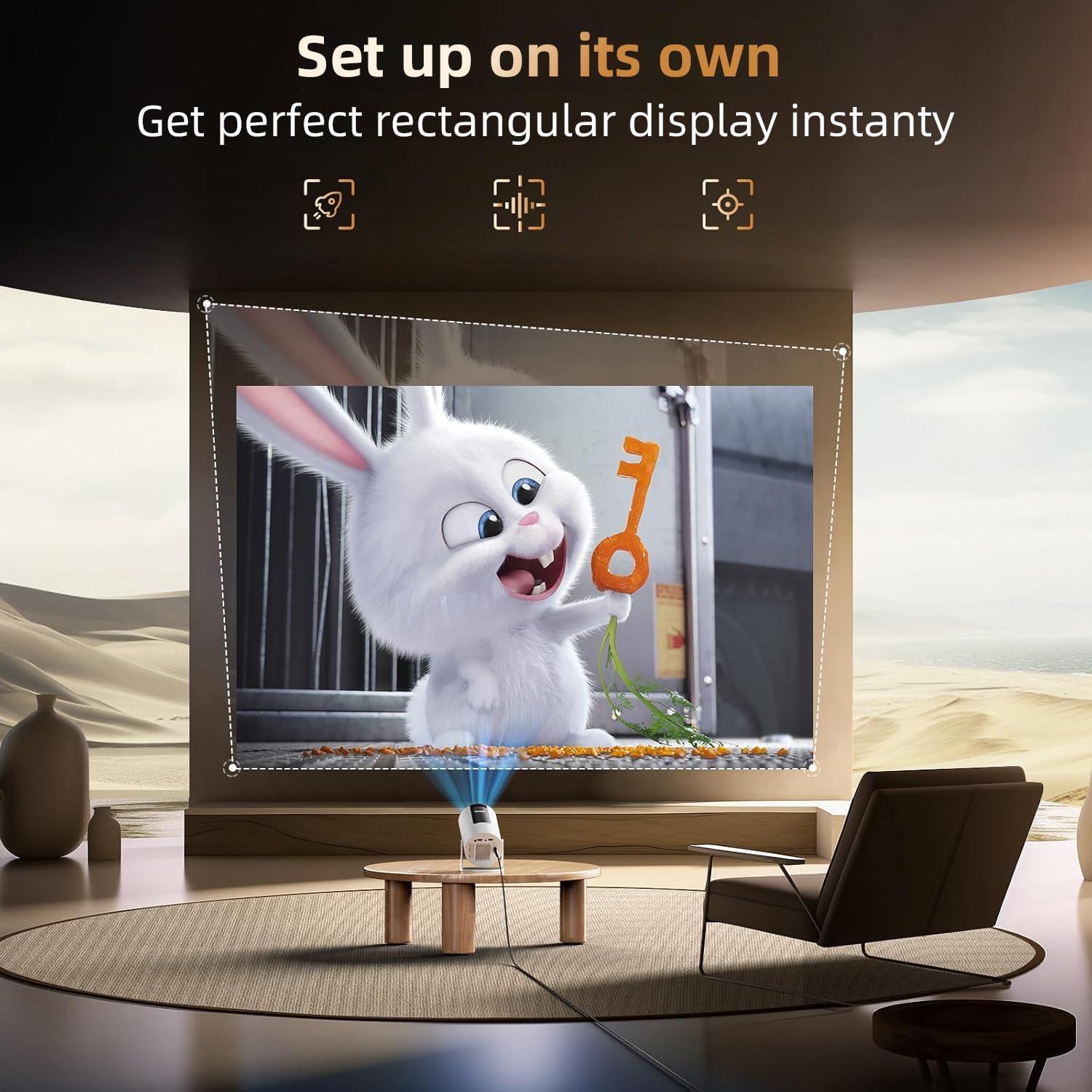 Electric-Focus for Instant Clarity: Equipped with electric-focus and auto vertical keystone correction, this smart projector ensures a clear, perfectly aligned image every time. Whether it’s a movie night or a fun cartoon session for kids, enjoy a perfectly clear picture with no manual adjustments needed.
