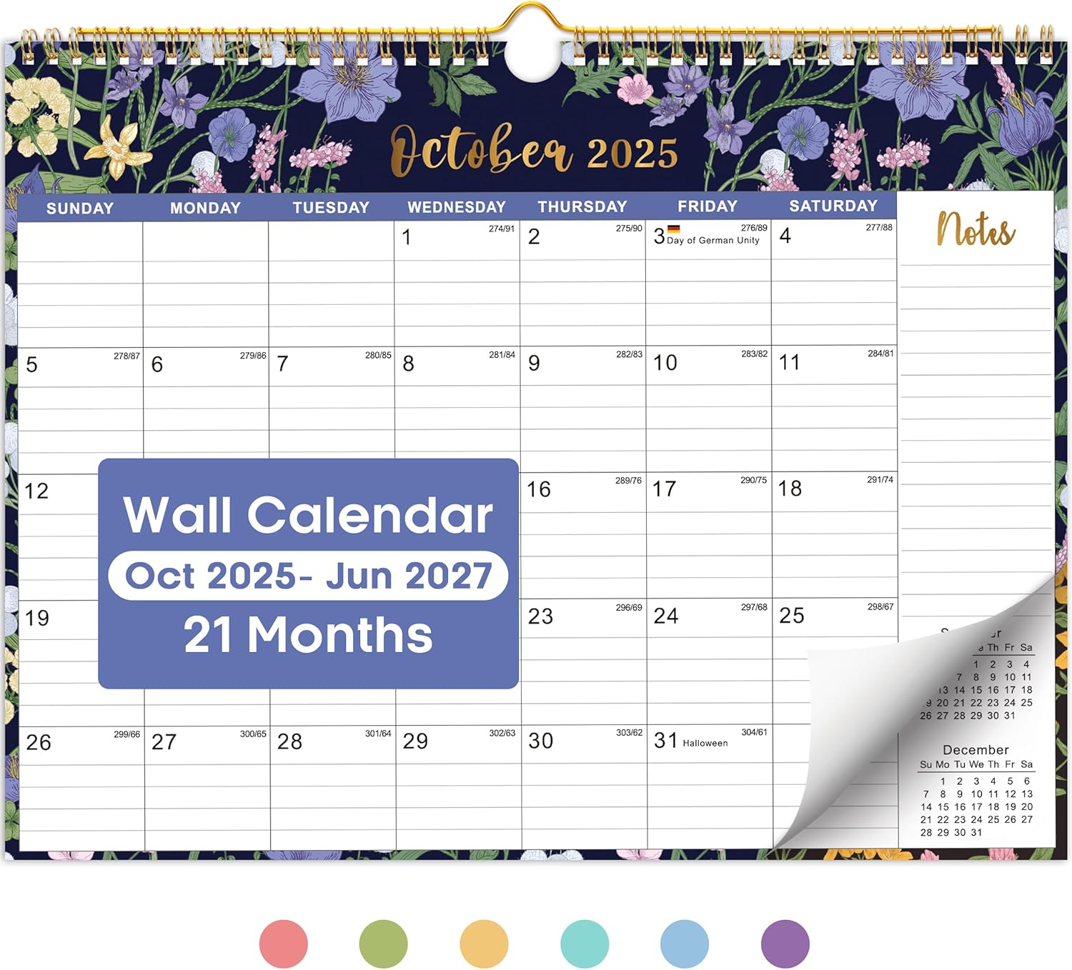 Keep Your Schedule in Check: This 21 month calendar, running from October 2025 to June 2027, measures 14.7" x 11.5" and gives you the room to plan out your days with ease. The spacious boxes and notes section allow you to stay organized, while your 2025 wall calendar makes it easy to mark important dates and holidays.