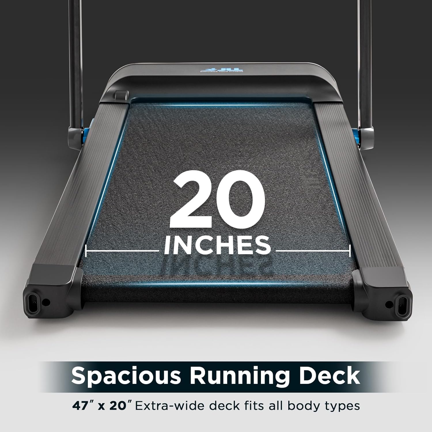 【20" EXTRA-WIDE RUNNING BELT】The spacious 20" x 50" deck gives you plenty of room for a natural stride—walk, jog, or run comfortably with freedom to move. Enjoy everything from a relaxing stroll to a brisk jog, all from the comfort of your living room.