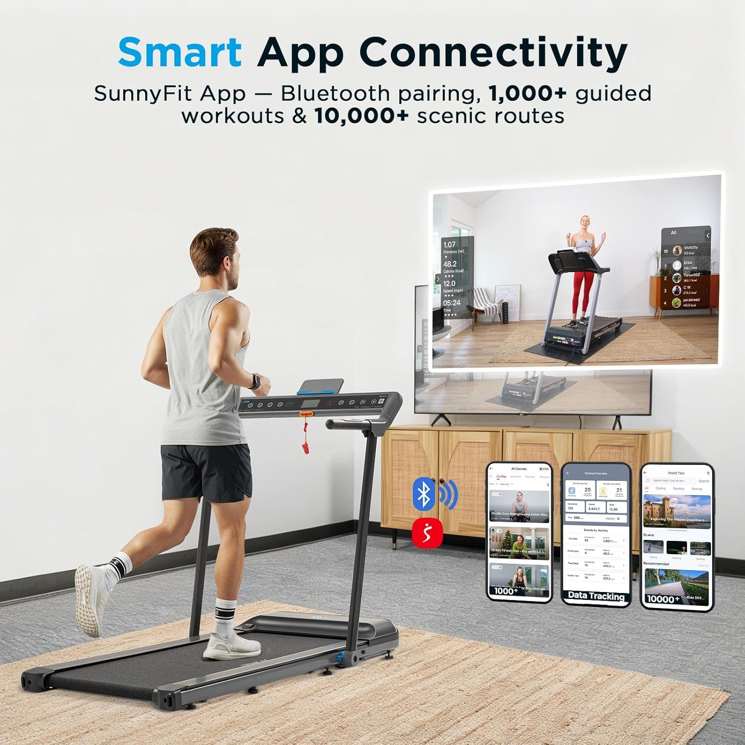 【SMART CONNECTIVITY & COACHING】Built-in Bluetooth pairs with the SunnyFit app (no subscription required), unlocking guided workouts, AI-powered plans, real-time progress tracking, over 1,000 trainer-led classes, and more than 10,000 scenic routes. Join community challenges to stay inspired and make fitness fun.