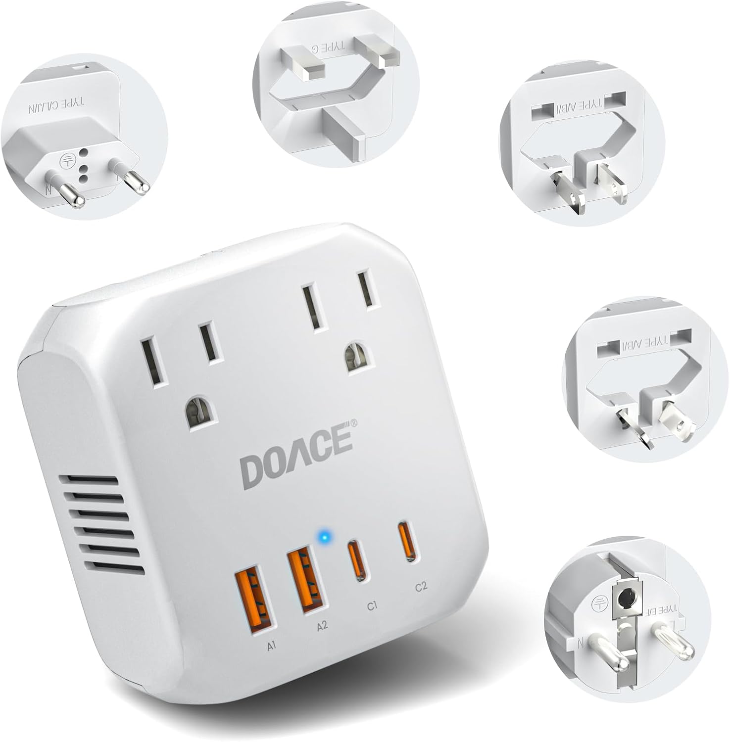 【Charge Up to 6 Devices at Once】DOACE Power Converter features 6 charging ports, including 2 sockets and 4 USB ports. It can charge 6 devices simultaneously. USB includes 2 PD 20W fast charging USB-C ports and 2 QC 18W fast charging USB-A ports.