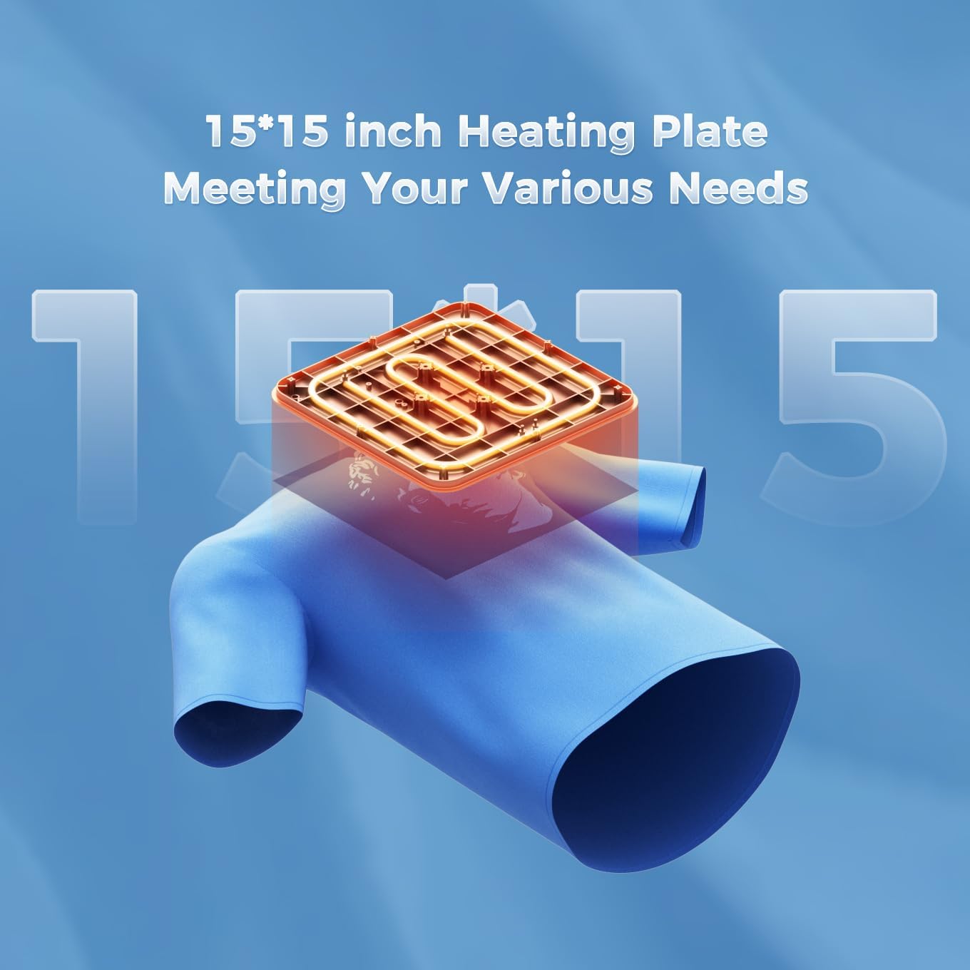 【Heats Fast & Evenly for Maximum Productivity】Reach 180°C in just 7 minutes thanks to the dual-tube heating core and precise temperature control sensors,which help to get uniform Heat Distribution Across the 15x15”Plate,reducing wait time and allowing you to press more efficiently. The fast heat-up time ensures you're ready to work quickly, making it ideal for creators on tight schedules or high-volume production.