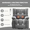 【𝙈𝙖𝙨𝙨𝙖𝙜𝙚 𝙍𝙚𝙘𝙡𝙞𝙣𝙚𝙧 𝙬𝙞𝙩𝙝 𝙃𝙚𝙖𝙩𝙞𝙣𝙜 𝙁𝙪𝙣𝙘𝙩𝙞𝙤𝙣】: Features 8 vibration massage points and lumbar heating, this electric recliner chair with massage and heat targets your back, waist, thighs, and calves. Multiple modes and intensity levels provide a full-body relaxation experience, perfect for relieving daily stress and fatigue.