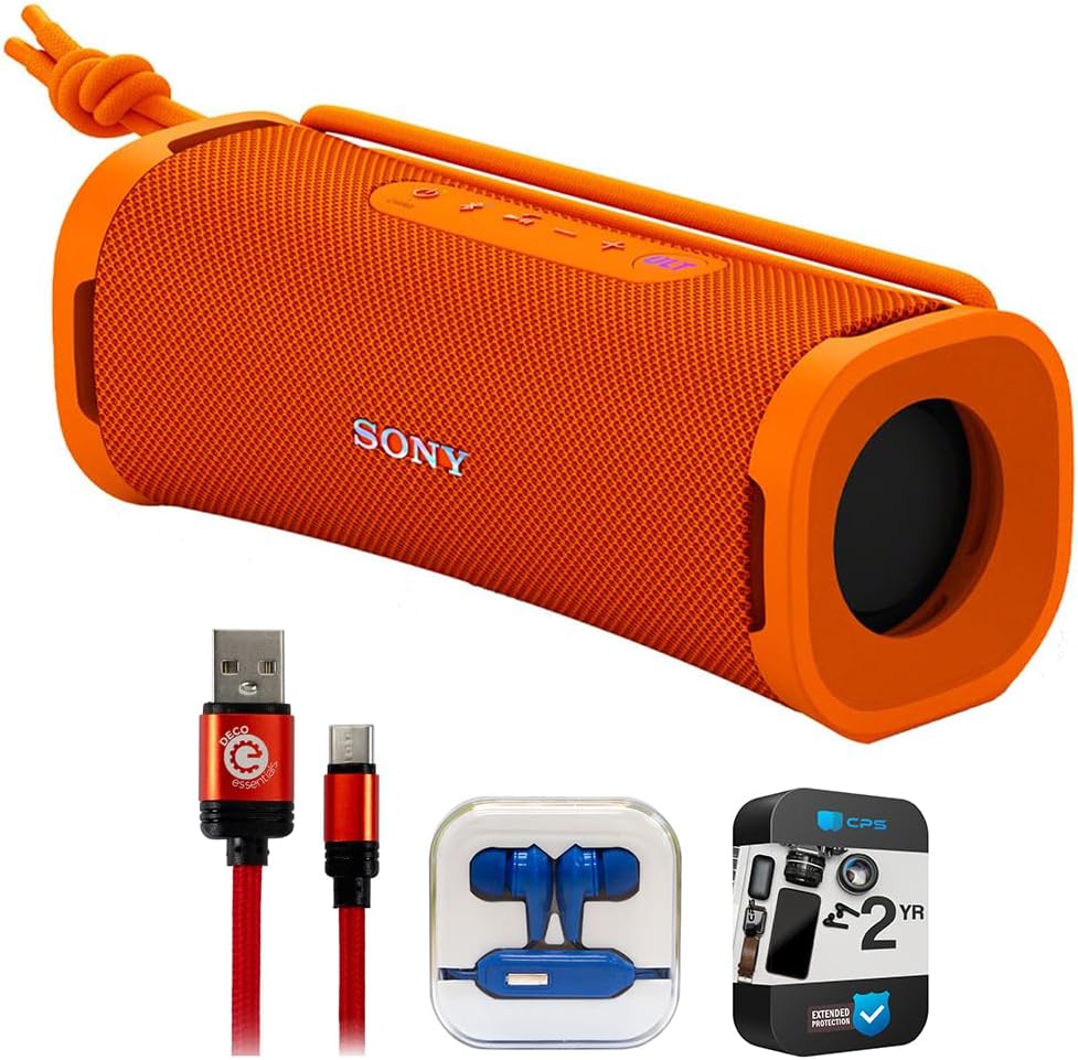 Sony SRSULT10/D ULT Field 1 Wireless Ultra Portable Bluetooth Compact Speaker Bundle with 6FT Type-C Charge & Sync USB Cable, in-Ear Headphone (Colors May Vary) and 2 YR CPS Enhanced Protection Pack