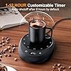 【Customizable Mug Warmer】MEION mug warmer offers 4 customizable heat settings (131°F, 145°F, 167°F, and 185°F) and a 1–12 Hour Timer with auto shut-off. It is set to automatically turn off after 8 hours by default. Enjoy a warm beverage whenever you like. Note: With a lid on, drinks heat up faster.