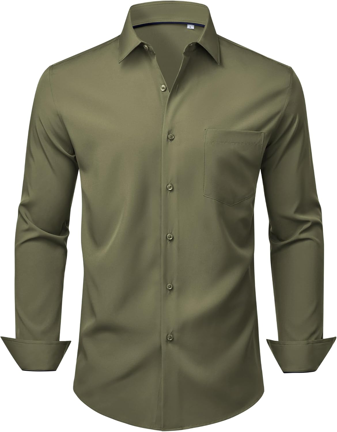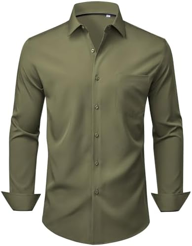 Alimens & Gentle Mens Dress Shirts Stretch Long Sleeve Wrinkle Free Business Casual Button Down Shirt for Wedding