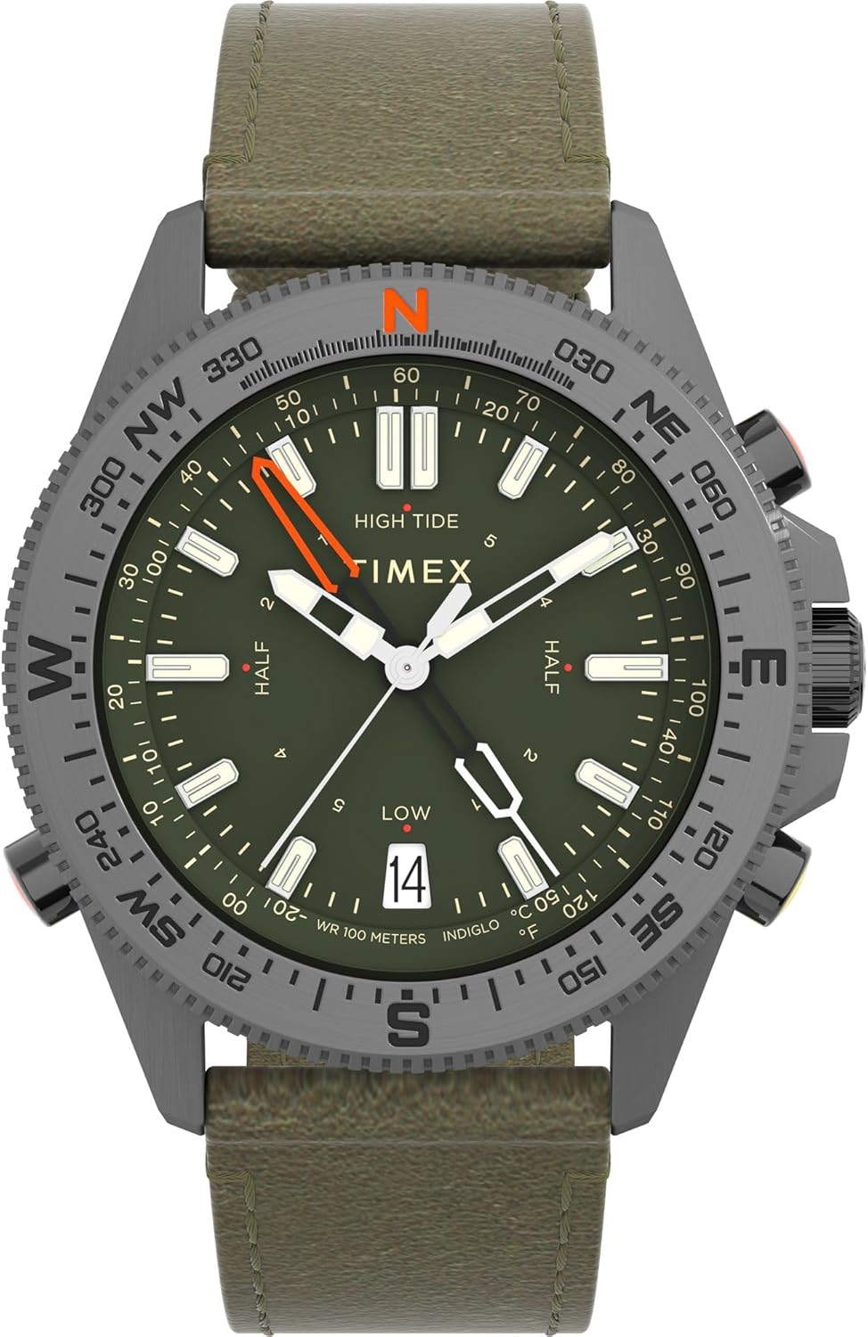 Timex Men's Expedition North Tide Temp Compass 43mm Watch - Brown Strap Green Dial Gunmetal Case