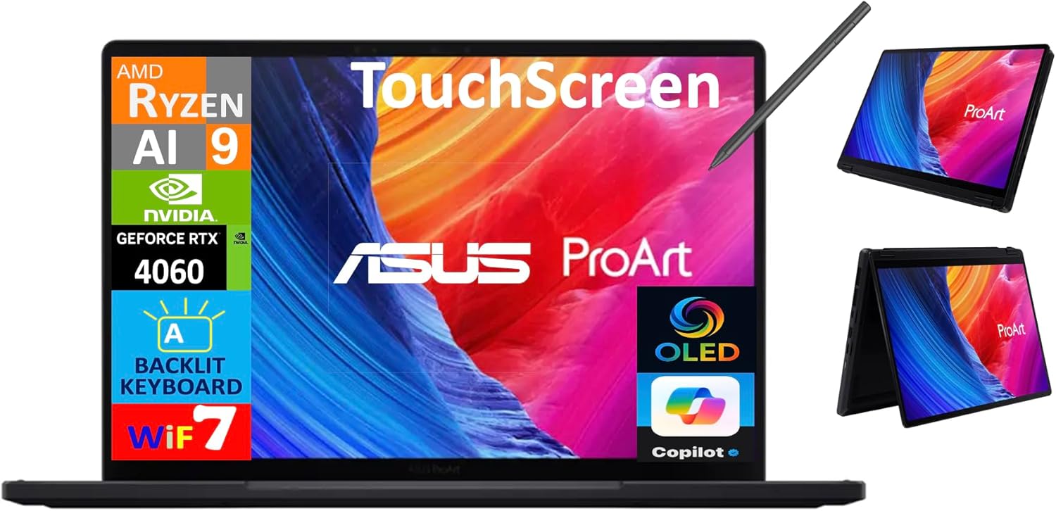 ASUS ProArt AI Powered 2-in-1 Laptop 13.3" Touchscreen AMOLED 2.8K Display (AMD Ryzen AI 9 HX 370, 32GB LPDDR5X, 2TB M.2 PCIe SSD, Active Pen, Backlit KB, WiFi 7, Webcam, Bluetooth 5.4, Win 11 Pro)
