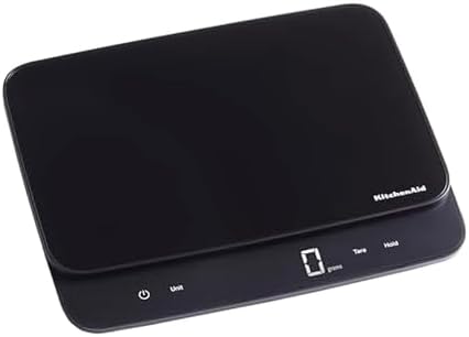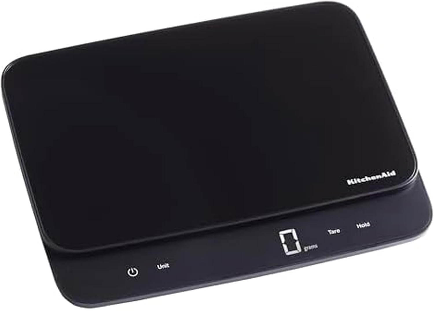 KitchenAid KQ917 High Capacity Glass Surface Digital Kitchen and Food Scale, 30 Pound Capacity and Precision, Grams, Ounces, Pounds, Fluid Ounces & Milliliters, LED, Tare Function, Black