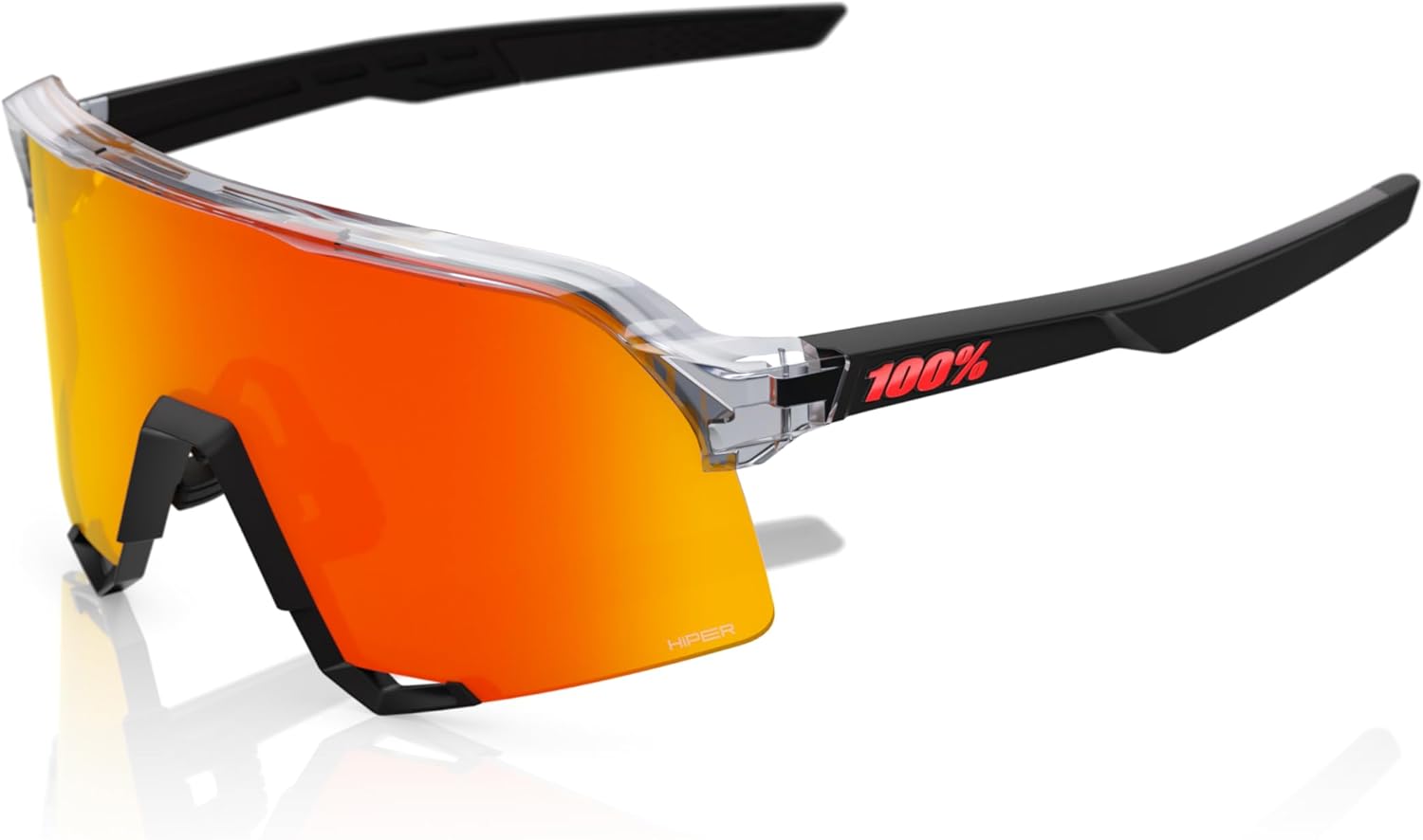 100% S3 Sunglasses Polished Translucent Grey & Matte Black - HiPER Red Mirror Lens