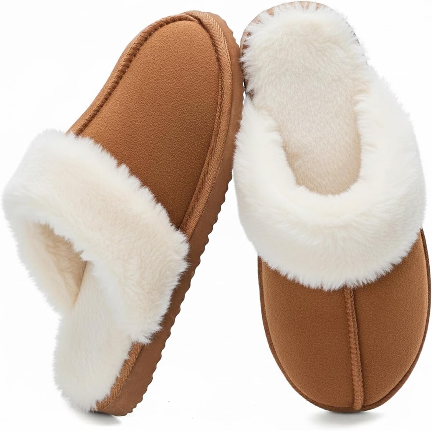 Fuzzy Slippers for Women Cozy Faux Fur House Shoes Winter Warm Memory Foam Slippers for Indoor and Outdoor