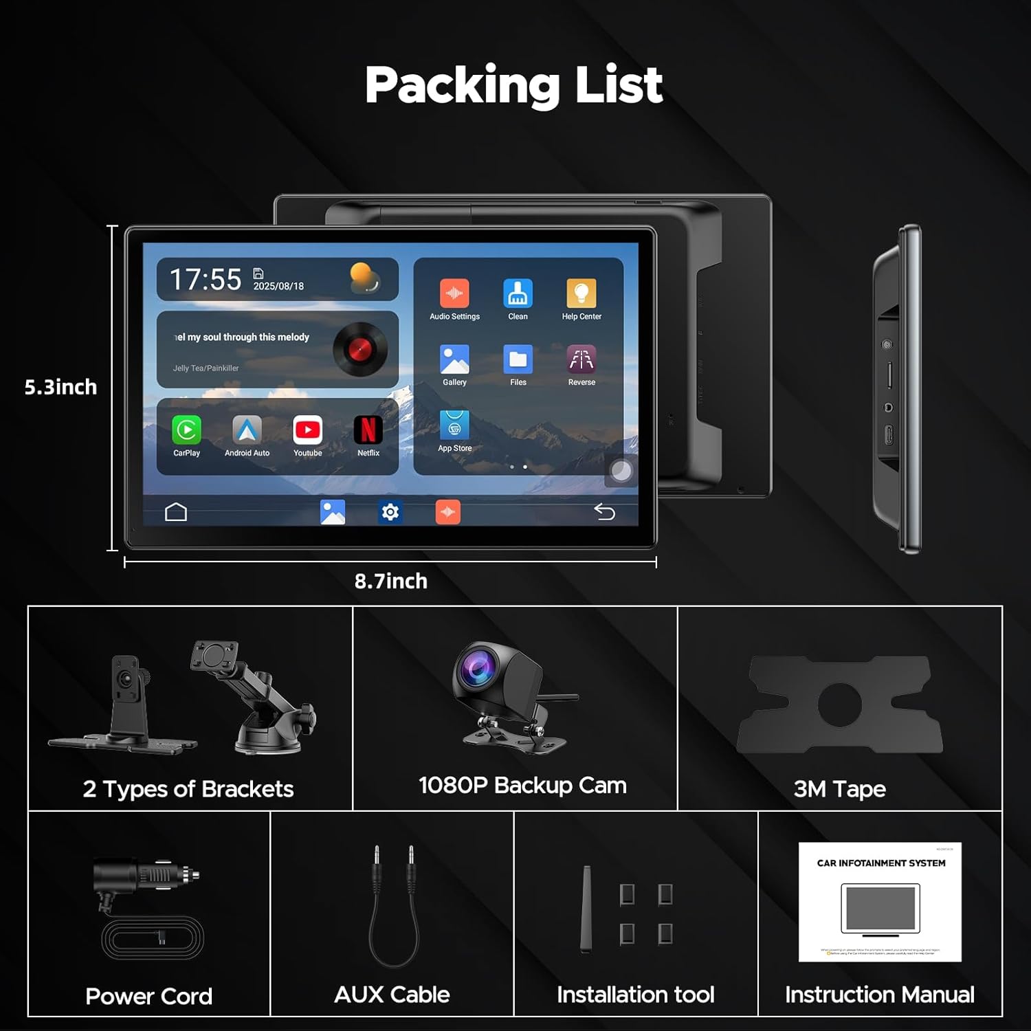 【OTA Updates: Always Up-to-Date】Keep your android auto screen fresh with instant OTA updates. The moment a new version drops, get it wirelessly. Stay on top of the latest video apps, features, and bug fixes so your CarPlay screen always runs smoothly and delivers the best driving experience.
