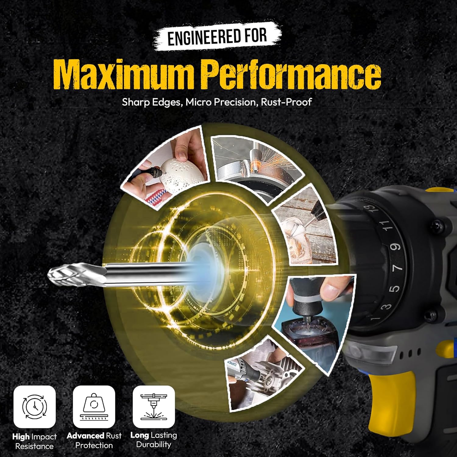 ONE SET, ENDLESS POSSIBILITIES: This tungsten carbide burr set isn't just for metal; use it on stone, glass, and even plastic. Perfect for everything from basic grinding to detail work like jewelry making, carving, and polishing, these rotary files have got you covered.