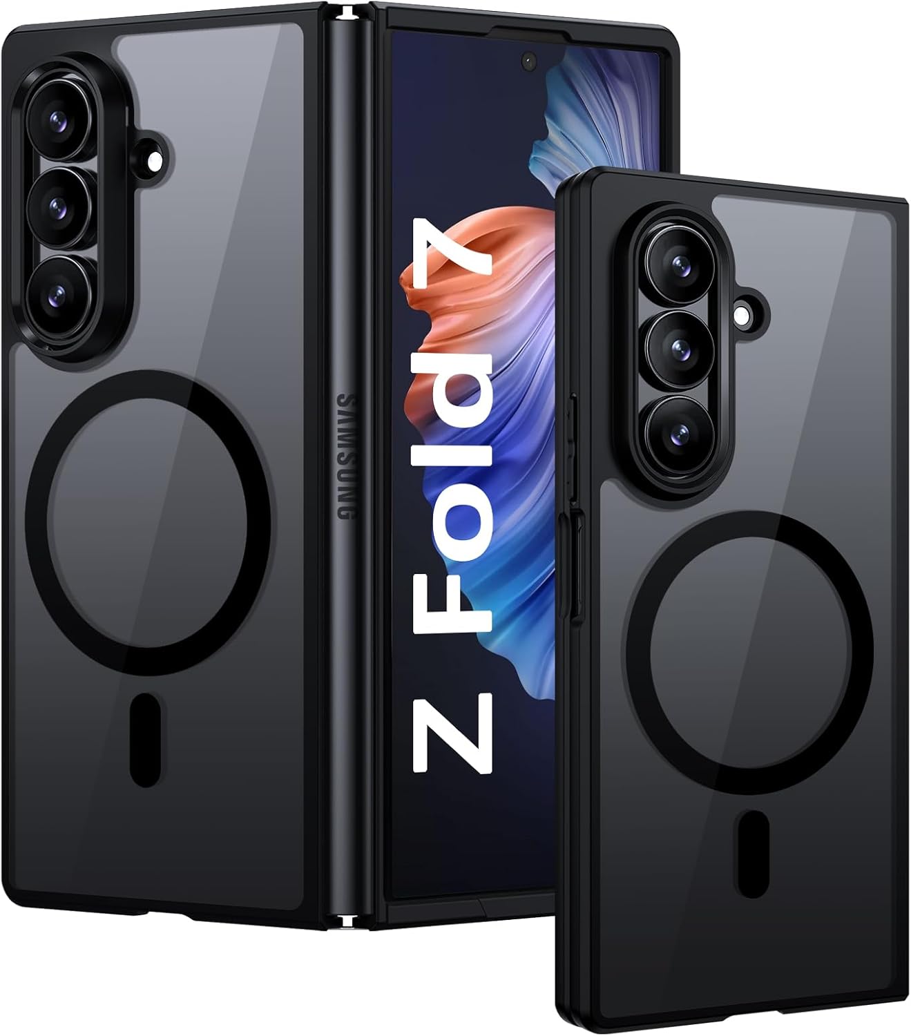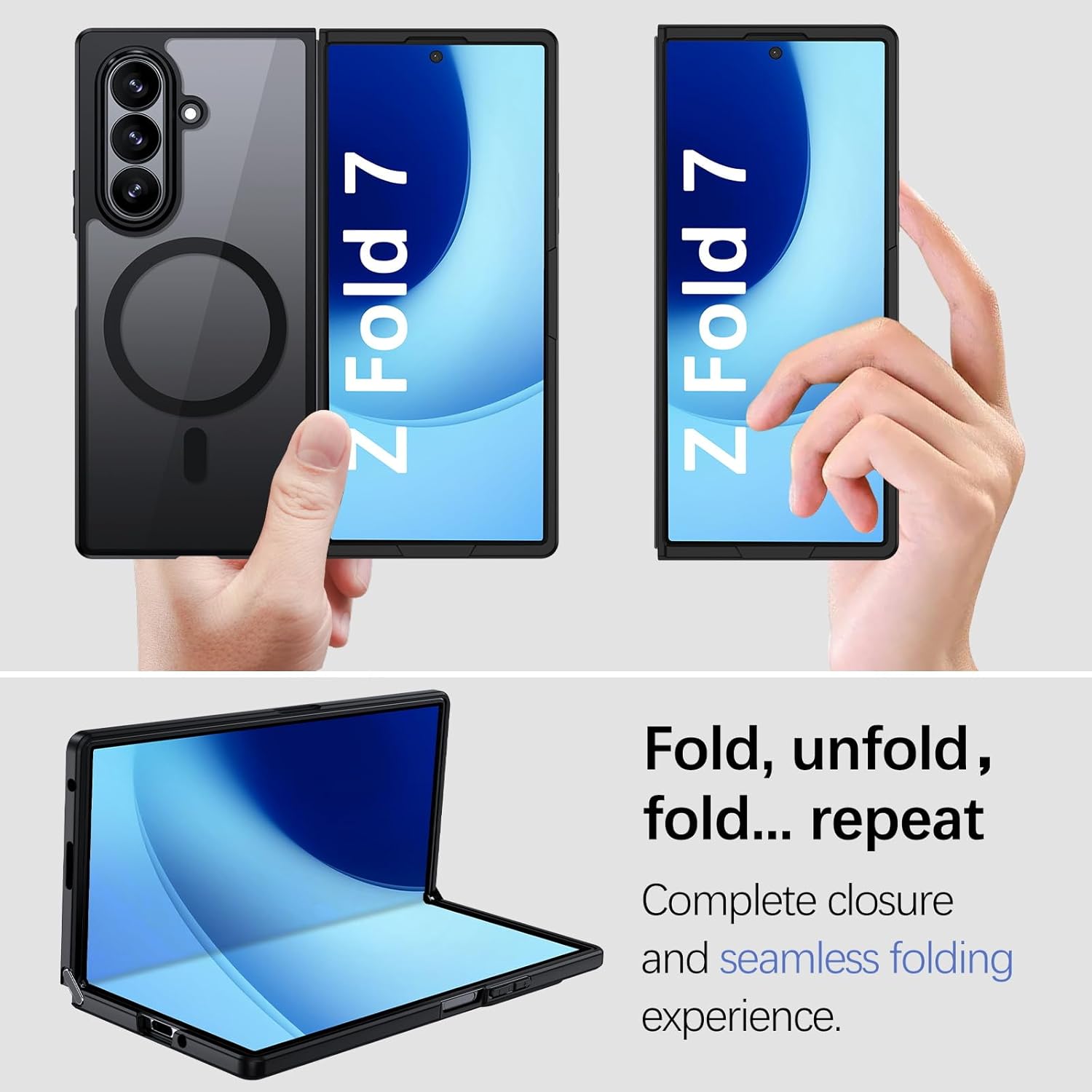 GUAGUA for Samsung Galaxy Z Fold 7 Magnetic Case Compatible with MagSafe Slim Fit Shockproof Protective Samsung Galaxy Z Fold 7 Phone Case for Men Women, Transparent Back Features: Compatible with MagSafe: Built-in strong magnetic attraction can make your phone compatible with all the mag safe accessories, stick firmly and enhance the wireless charging speed. Transparent Clear Design: This Galaxy Fold 7 Case Features a hard TPU frame and a hard PC back to provide you with a premium touch and excellent grip, it also feels comfortable in your hands while offering ample grip to prevent slips and drops. You can clean your phone case easily with just a gentle wipe to make all fingerprints, dust and dirt invisible. Metal Camera Frame & Buttons: Electroplated metal camera frame & buttons will make phone case more textured and luxurious. Slim Fit & Lightweight: This Galaxy Z Fold 7 case is sleek, so that it easy to put on and take off. As if it is natural part of the Samsung Galaxy Z Fold 7. Meanwhile, It is easy to fit in pockets and bags. Specification: Compatible Model: for Samsung Galaxy Z Fold 7 Material: Hard PC & Soft TPU Colors: Transparent Q&A: Does this case only fit Samsung Galaxy Z Fold 7? --Yes, this black magsafe phone case is only designed for Samsung Galaxy Z Fold 7. Does this Z Fold 7 case come with a screen protector? --NO, this GUAGUA Z Fold 7 case don't have a built in screen protector. --Please Note: Case ONLY, screen protector and other accessories are NOT included. Wireless charging compatible? --Yes. GUAGUA Samsung Z Fold 7 magnetic case is compatible with all MagSafe accessories (MagSafe wallet, MagSafe Battery Pack, MagSafe car mount)
