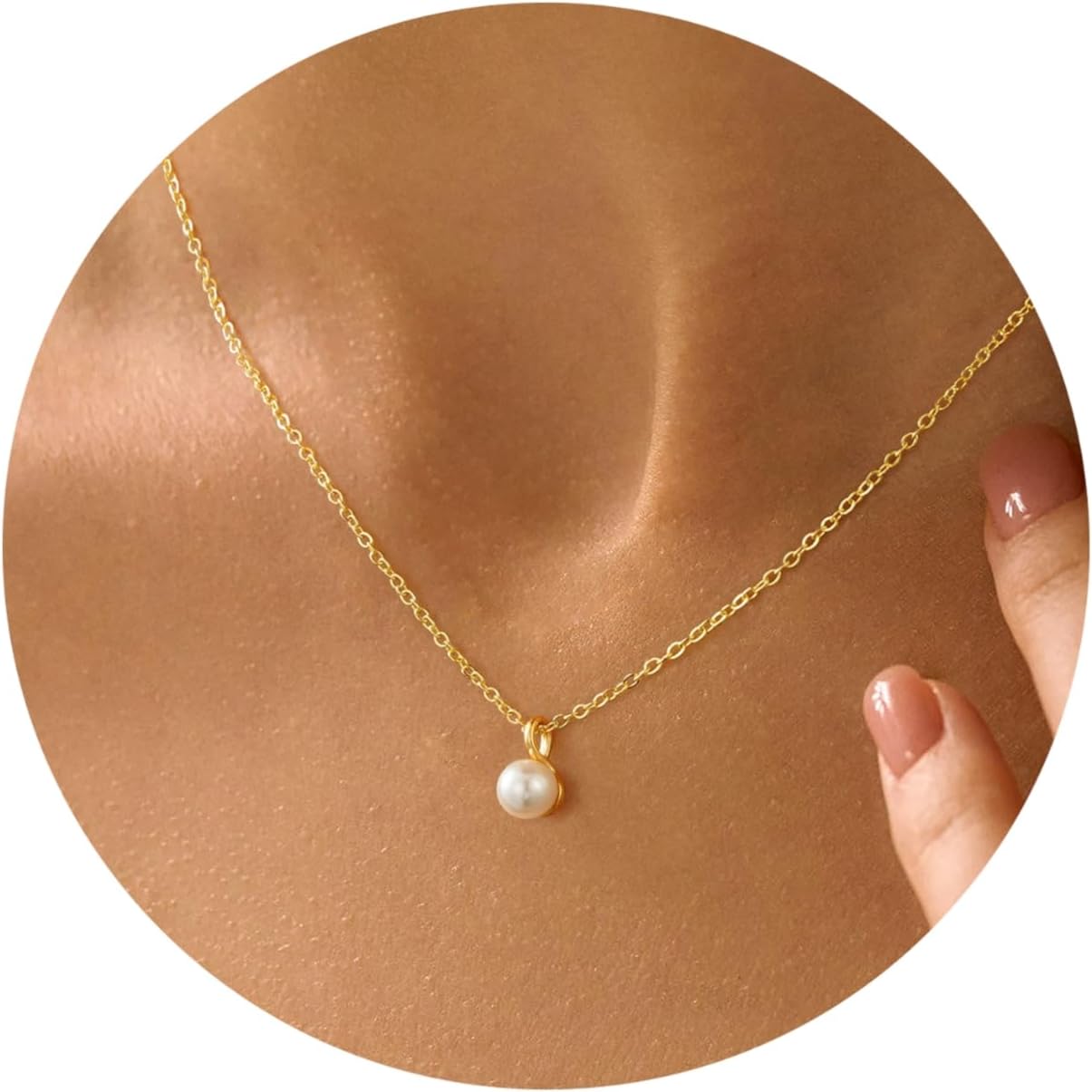 M MOOHAM Pearl Necklaces for Women - Dainty Gold Pearl Choker Pendant Necklace for Women Trendy Simple Cubic Zirconia Drop Bridal Necklace Womens Wedding Jewelry Bridesmaid Proposal Gifts