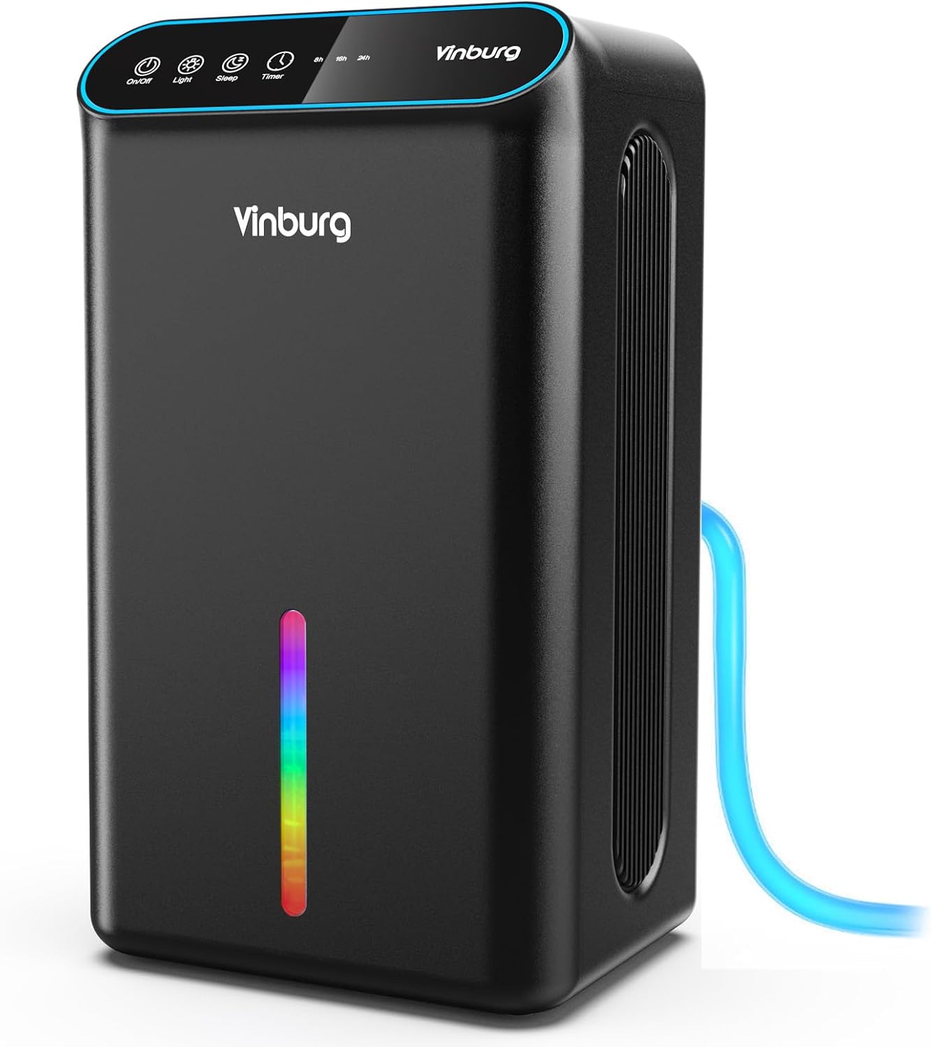 【Day & Sleep Mode with Whisper-Quiet Operation】This smart dehumidifier features two modes for all-day comfort. Day Mode delivers powerful moisture removal during active hours, while Sleep Mode lowers fan speed and noise to below 30 dB, turns off the lights, and creates a calm, undisturbed atmosphere—perfect for bedrooms, nurseries, and quiet workspaces.