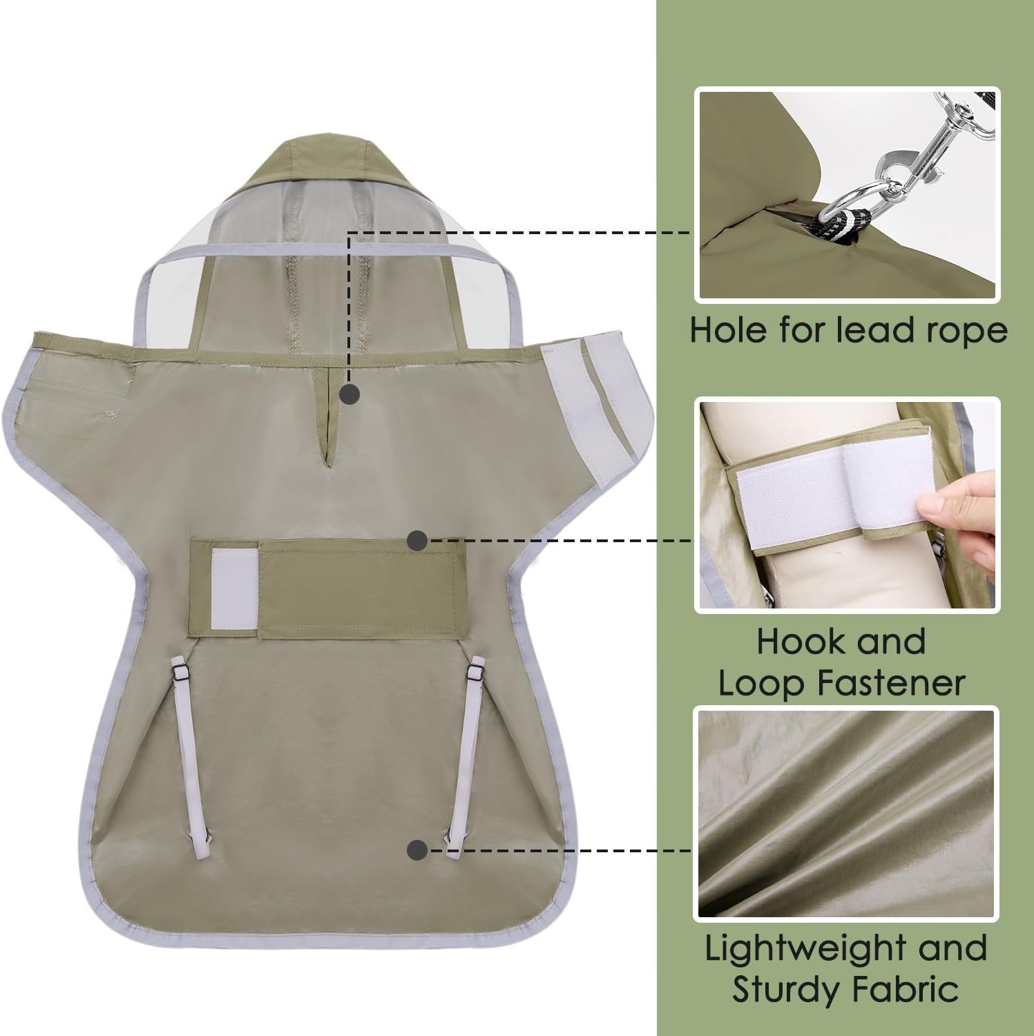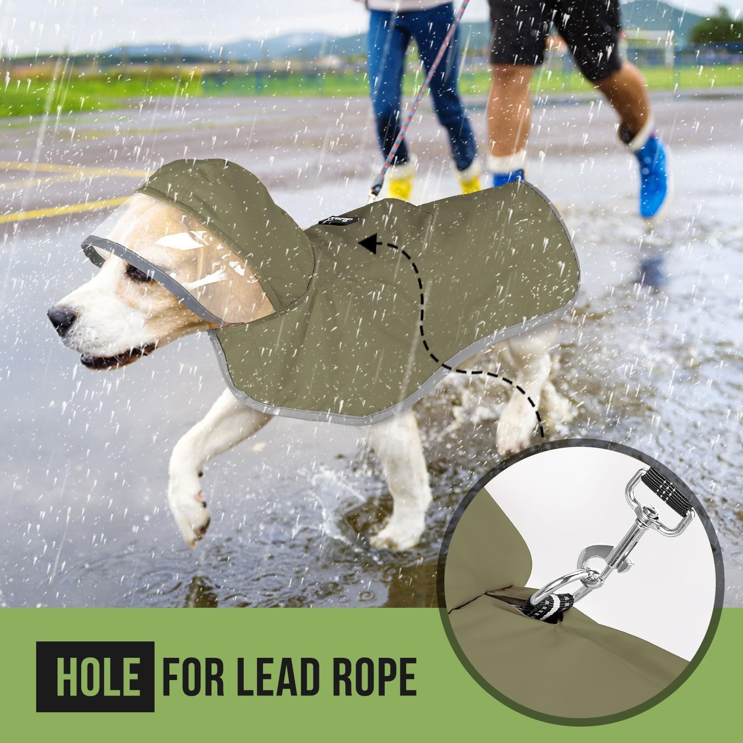 Lukovee Dog Raincoat - Lightweight Hooded Dog Rain Coat for Large Medium Small Dogs, Adjustable Poncho Jacket with Reflective Stripes & Built-in Storage Pocket (Green, Small)