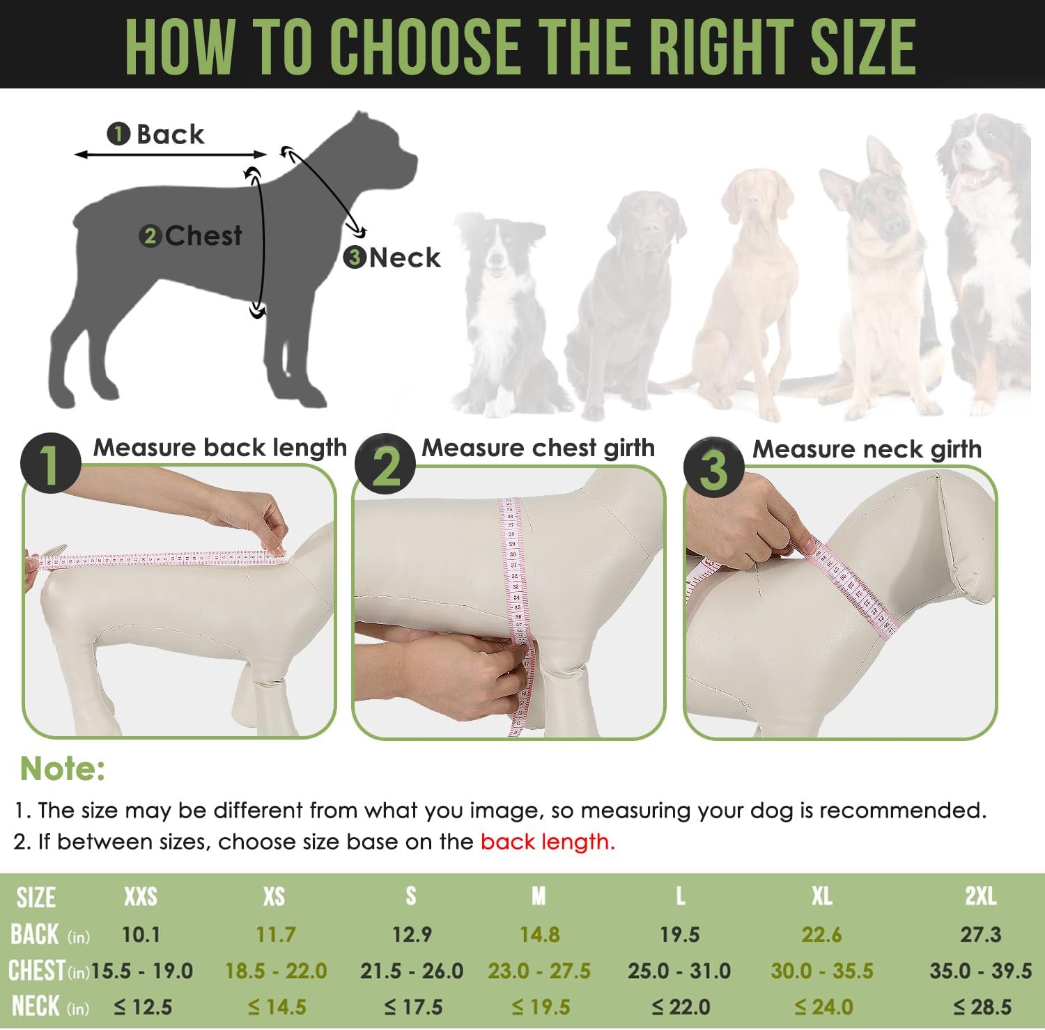 【Adjustable Neck & Waist for Quick Fit】--- Adjustable neck and belly straps provide a secure, comfortable fit for most breeds. Easy to put on and adjust. The intuitive design makes it effortless to put on and adjust.