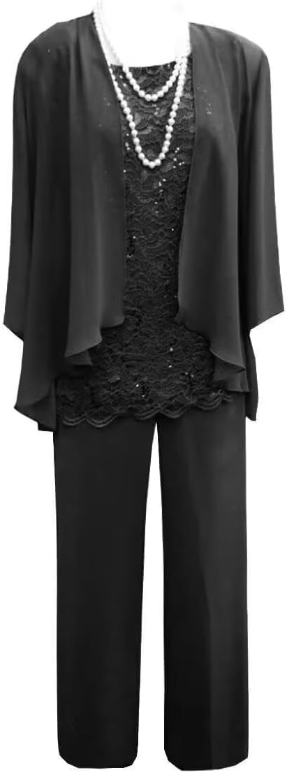 3 Piece Mother of The Bride Dress Pant Suit with Jacket Long Chiffon Formal Dresses for Women Wedding Guest