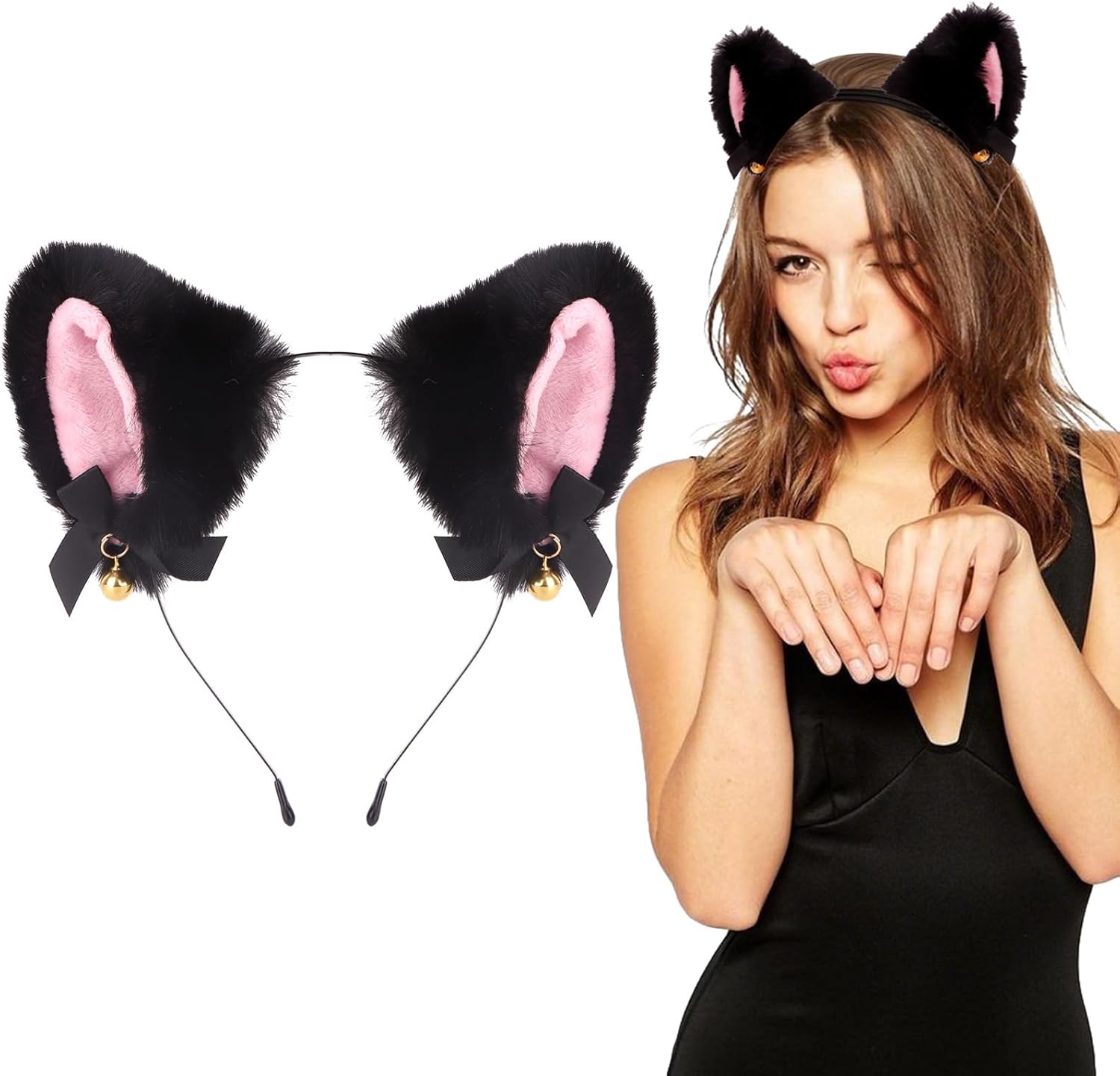 Cat Ears Headband Adult Ears Headband with Bells, Halloween Headpiece for Catwoman
