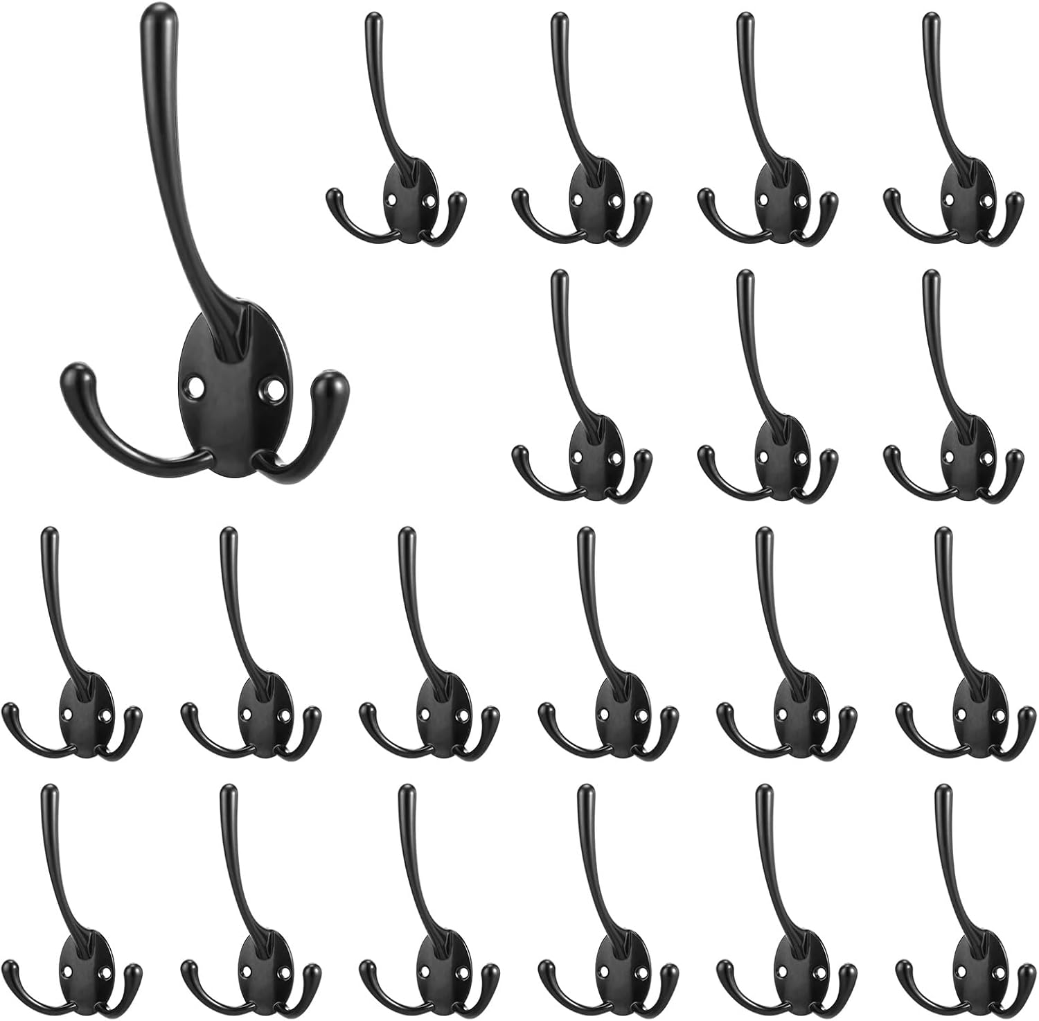20 Pcs Heavy Duty Three Prongs Coat Hooks, Metal Triple Coat Hooks Retro Wall Mounted Black Hook with 40 Screws for Hanging Towel Backpack Coats Scarf Key Hat