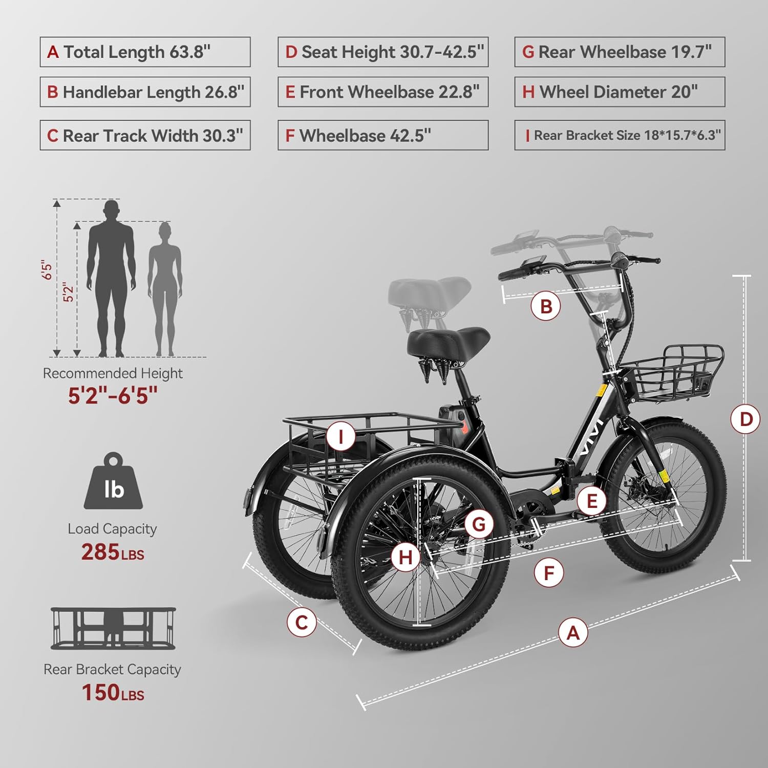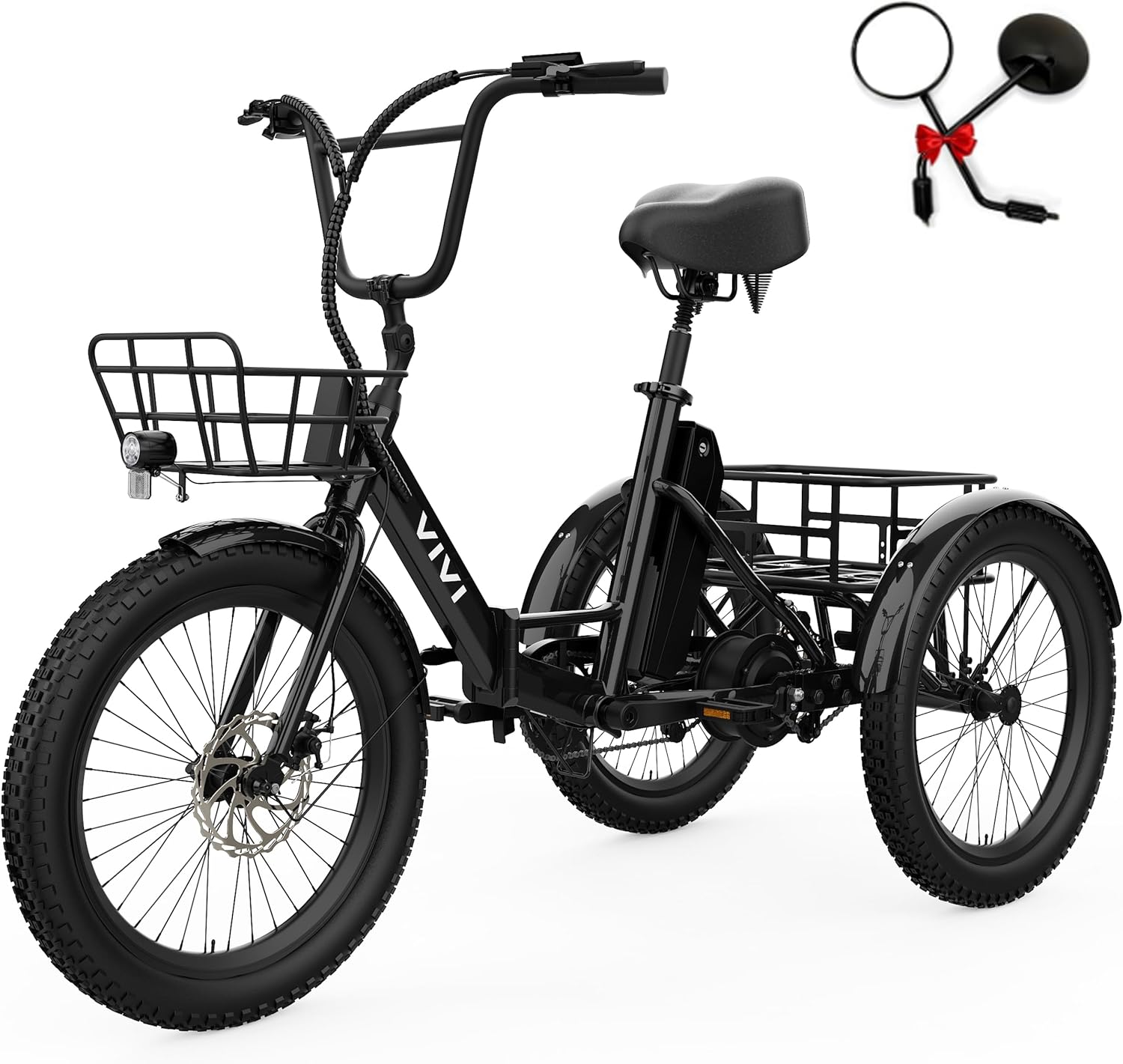 Vivi Electric Bike for Adults, 750W Peak 20'' Folding 3 Wheels Electric Bicycle, 48V 10.4Ah Removable Battery, Speed Differential, 15.5MPH Eletric Bike with Bracket