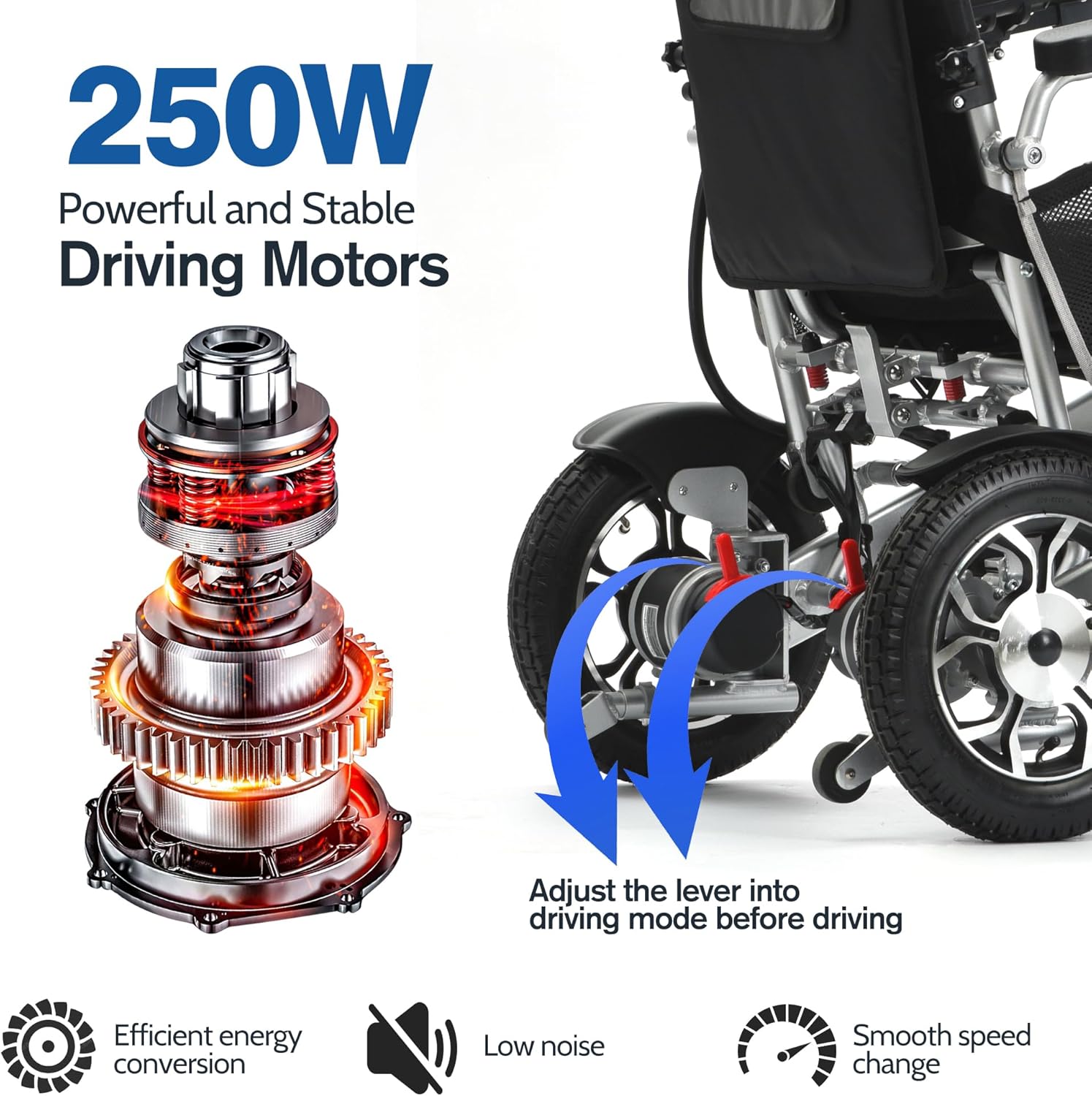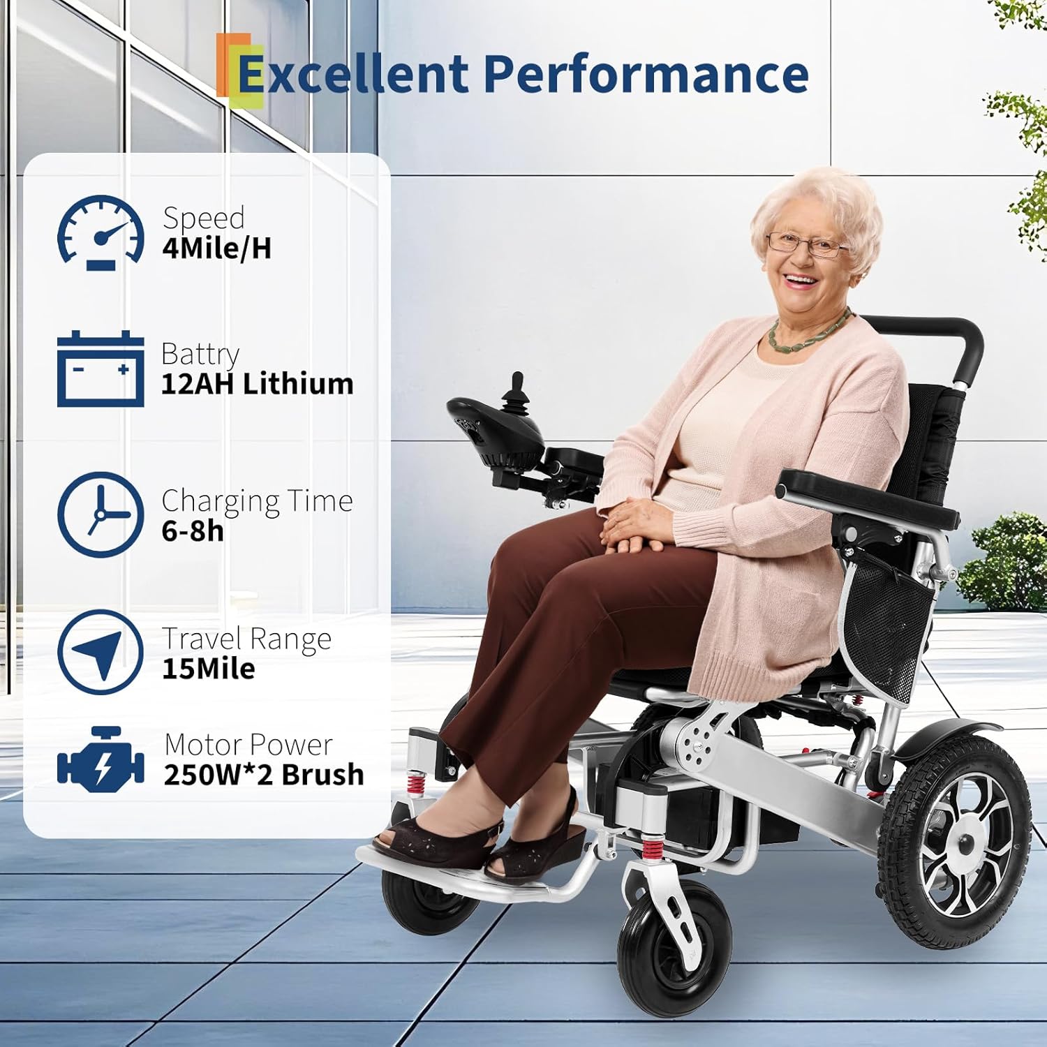 Sturdy & Foldable Design: This electric wheelchair features a durable aviation-grade aluminum alloy frame, combining strength with portability. Folds in 3 seconds for easy storage and transport, perfect for compact spaces and travel.