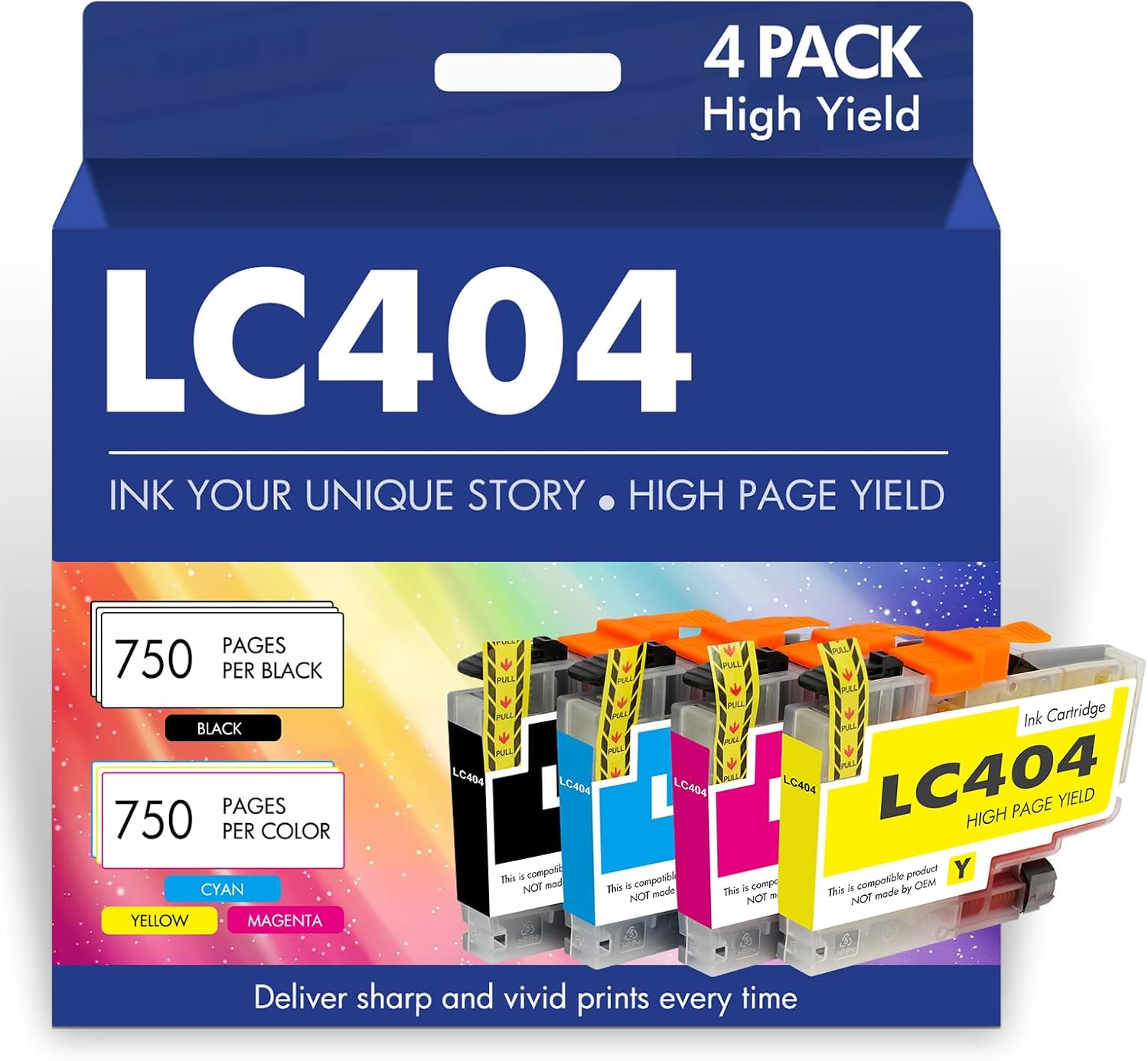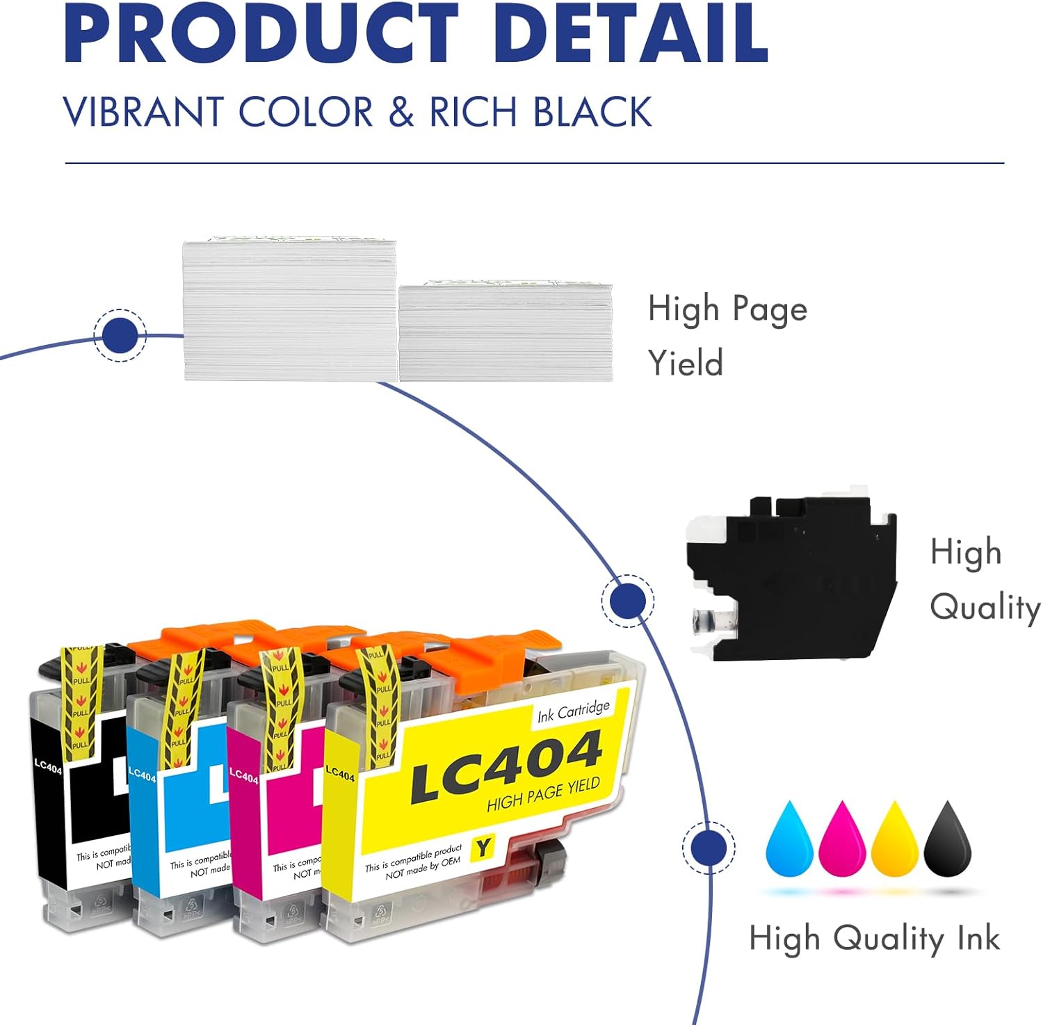 Product Model: LC404XL LC404 Ink Cartridges 4 Pack to use with MFC-J1205W MFC-J1215W MFC-J1205W XL Printer