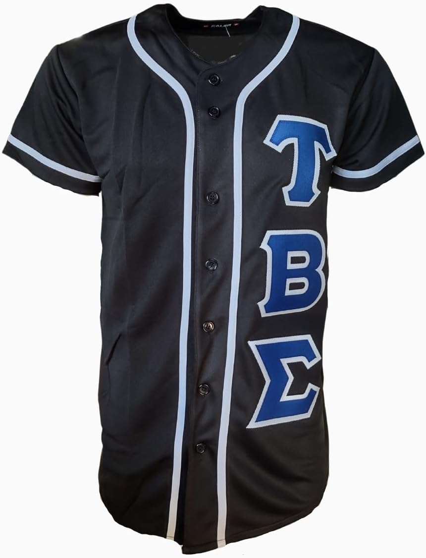 Step up to the plate in style with this classic Tau Beta Sigma baseball jersey. The striking base color is beautifully complemented by crisp white piping and bold blue Greek letters, creating a sophisticated collegiate look. This button-down baseball jersey features short sleeves perfect for warm weather comfort, while maintaining that authentic athletic aesthetic. The traditional baseball jersey cut offers plenty of room for movement without being baggy. Made with attention to detail, the jersey includes quality button closures down the front and clean, professional letter stitching. Whether you're showing your Tau Beta Sigma pride at organization events or just want to rock a sharp baseball-style jersey, this piece delivers both comfort and style. The versatile design makes it suitable for casual wear, group activities, or special occasions. Please refer to the size chart to ensure the perfect fit for your frame.