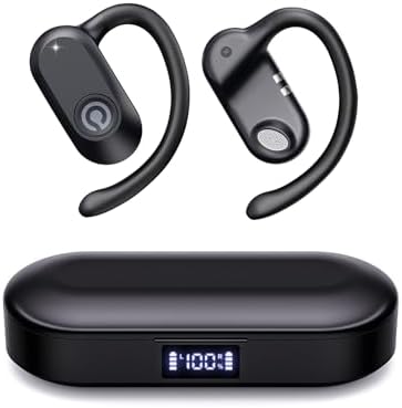 60 Hrs PLAYTIME & MULTIFUNCTIONAL BUTTONS - Say goodbye to frequent charging. The CT13 bone conduction headphones offer an impressive 60 hrs playtime, and each earbud can be used continuously for up to 12 hours. In addition, the external LED display allows you to know the remaining power of the charging case in real time, so you will never be without music on the go. With convenient physical buttons, you can adjust the volume, skip tracks, answer calls, and more just by pressing the buttons