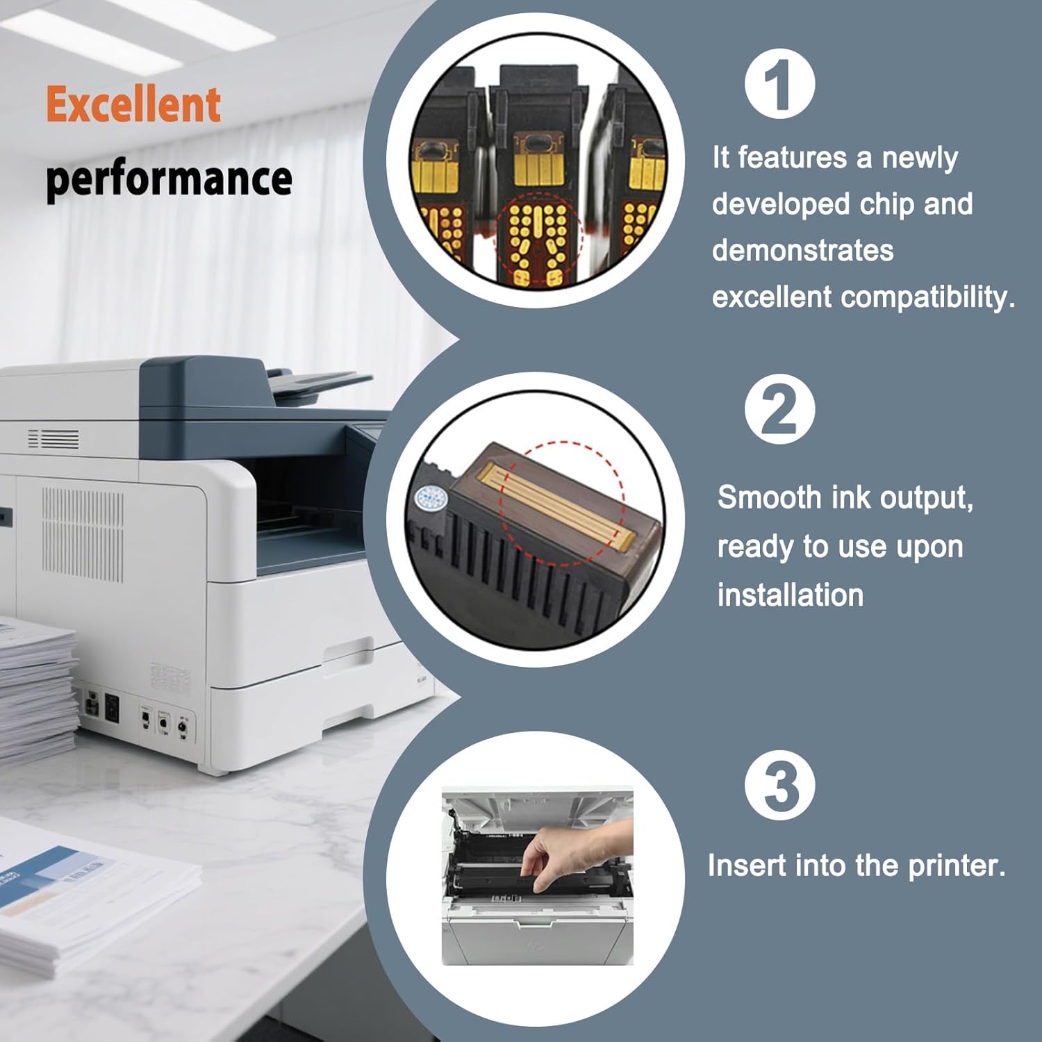 Intelligent Recognition Chip: Features an Enhanced Compatibility Chip for precise printer recognition. Ensures seamless integration with models using 72 C9380A C9383A C9384A print head