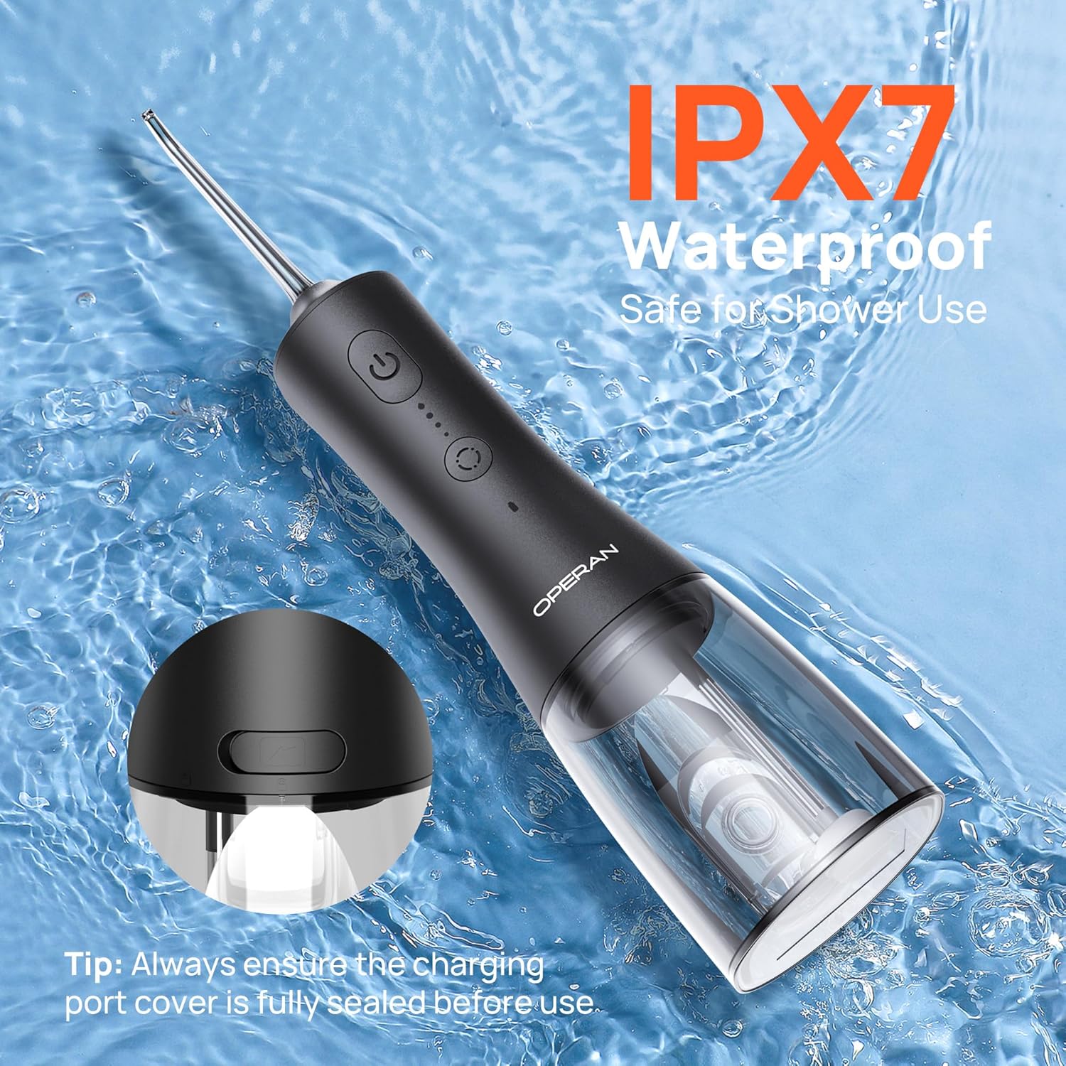 Operan Cordless Water Flossers for Teeth, 300ML Rechargeable Oral Irrigator with 4 Modes & 4 Nozzles, Portable Water Flossers for Adults, IPX7 Waterproof for Home and Travel, Black,01Pack