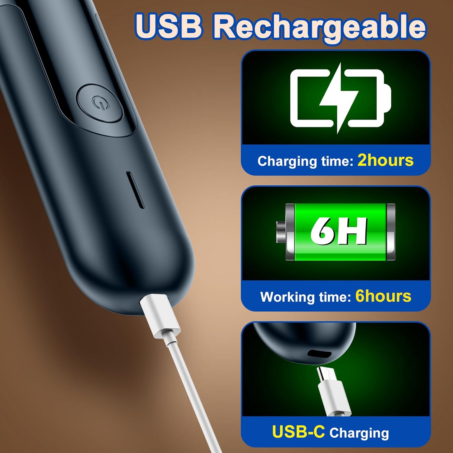 Convenient Recharging: Easily charge the Cordless Dog Grinder with the included USB cable, making it perfect for use with a laptop, AC adapter, or power bank. The lightweight, ergonomic design ensures easy operation for trimming your pet's nails anywhere