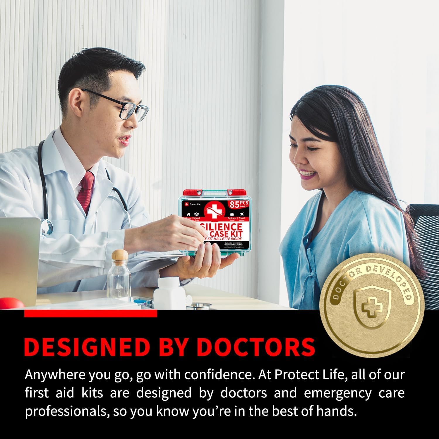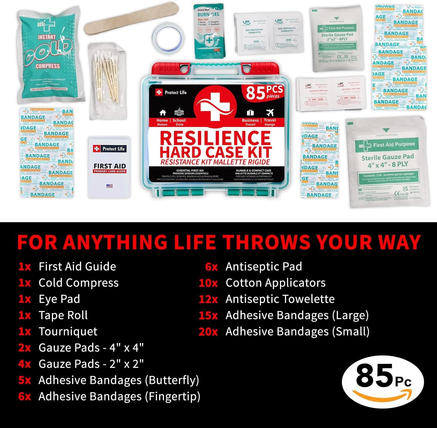 Protect Life Survival First Aid Kit for Home/Business, Camping Survival Kits | Mini Travel First Aid Kit | Camping Equipment | Small Kits for Car | Outdoor Emergency Survivals Pack - 85pcs