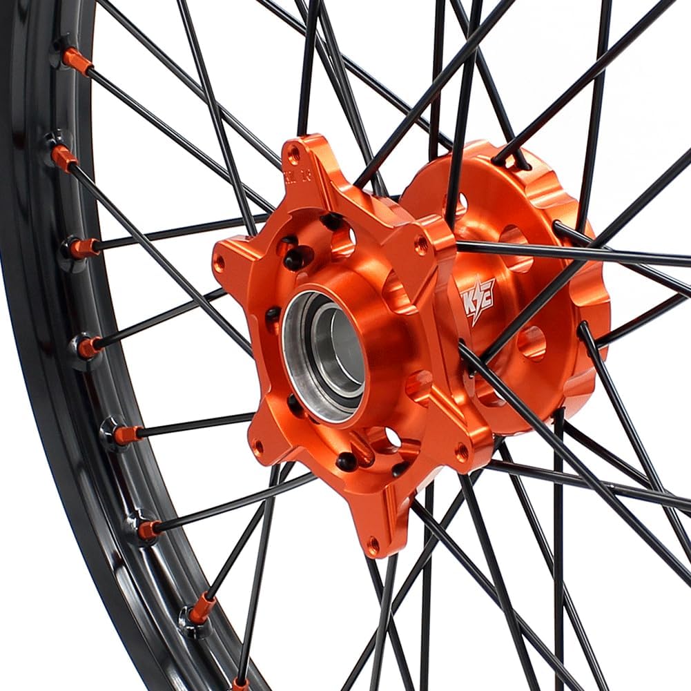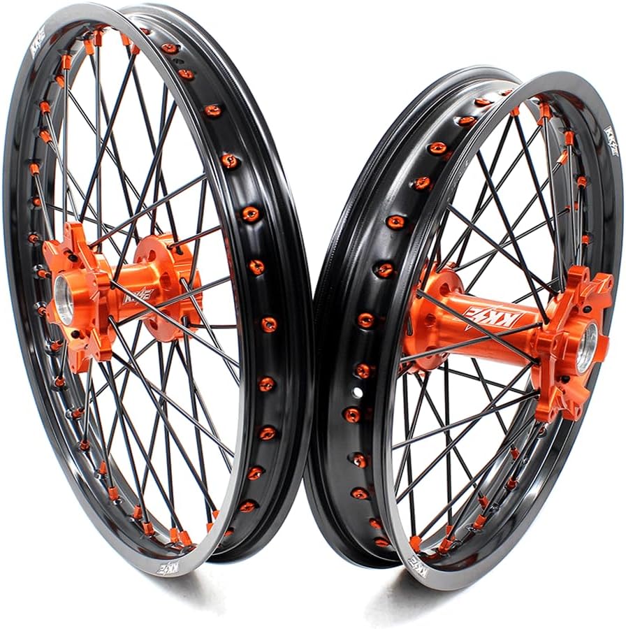 KKE 21/18 Enduro Dirt bike Motorcycle Wheels Rims Set Compatible with KTM EXC EXCF 2003-2025Features:100% Brand New, Strong enough for enduro and racing6082-T6 Aluminum CNC Hub, Stronger than stock hub7050-T6 Aluminum Gloss Rim304 Stainless Steel Spoke and Alloy nippleWheels are Already Assembled well(with hubs,bearings,spokes and rims)The Seals and Spacers are Packed In Small Package.The Pictures show exact wheels you will receiveKKE wheels will fit your bike Plug and PlayFitment:Compatible with KTM 125-530CC All Model 2003-2025Wheels Could Fit OEM Disc and SprocketPlease Check The Fitment Above Before Check OutItem Color:Orange CNC HubBlack GLM RimBlack SpokeOrange NippleAnodized Color, last a long timeInstruction For The Order:1. Please Inform Us The Year And Model Of Your Motorcycle Before Or After Check Out. 2. Please Feel Free To Contact Us If You Require More Detailed Information Or Have Any Special Instruction For The Processing Of Your Order. 3.Please Note Wheels are Signature Required Upon Delivery Due To Safety Concern.Warranty Information:1.We Will Accept Return If It Is Not Compatible / Wrongfully Sent / Being Damaged2.Please Contact Us Before Send The Merchandise Back, Thank You 3.Customer Is Responsible For Return Freight Charges If There Is Nothing Wrong With Our Item.