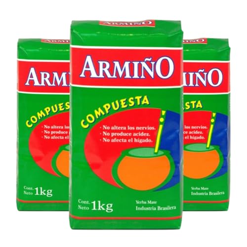 3-Pack Armiño Yerba Mate Compuesta – Herbal Blend – 1 kg / 2.2 lb Each – Smooth Uruguayan-Style Mate – Product of Brazil