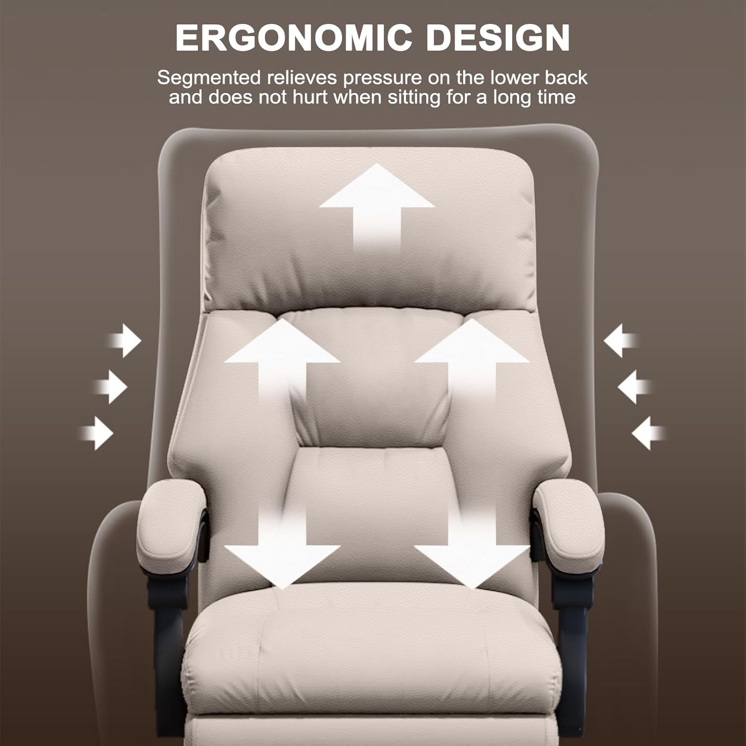 Executive Office Chair Comfortable Desk Chairs with Foot Rest High Back Computer Gaming Chairs Reclining PU Leather Swivel Work Chair for Home Office