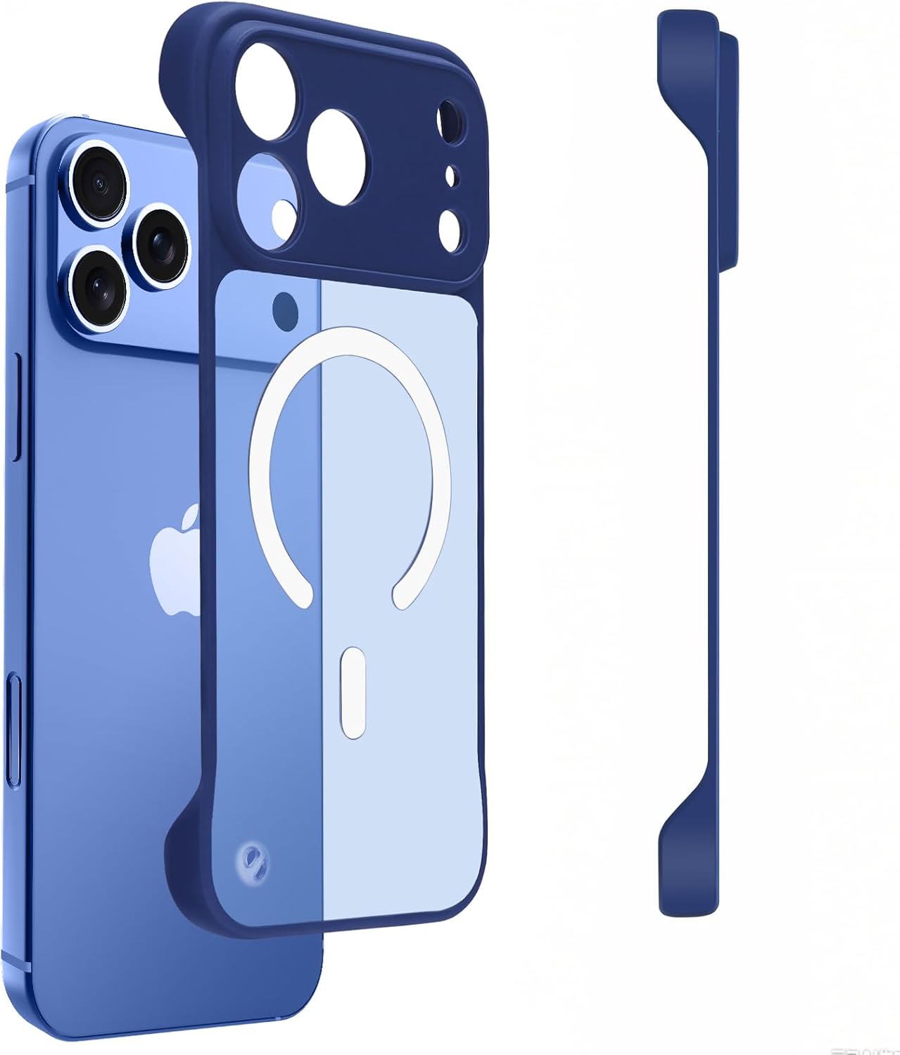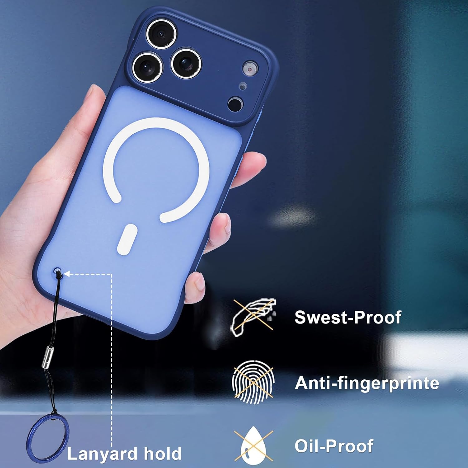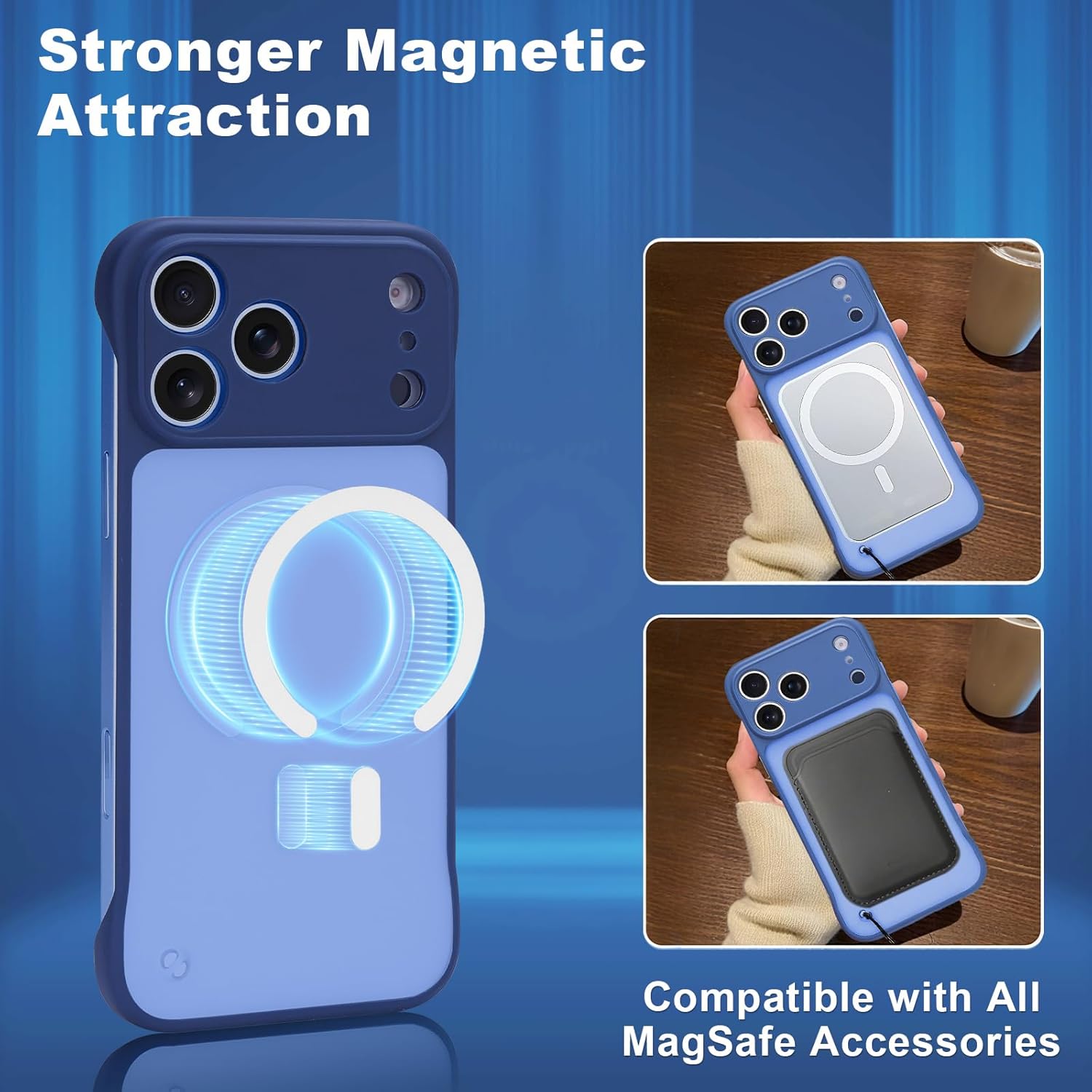 Omio Magnetic Slim Case for iPhone 17 Pro Compatible with MagSafe, Clear Matte Ultra-Thin Bumper Frameless Borderless Design with Finger Loop Full Camera Protection for Women Men, Deep Blue