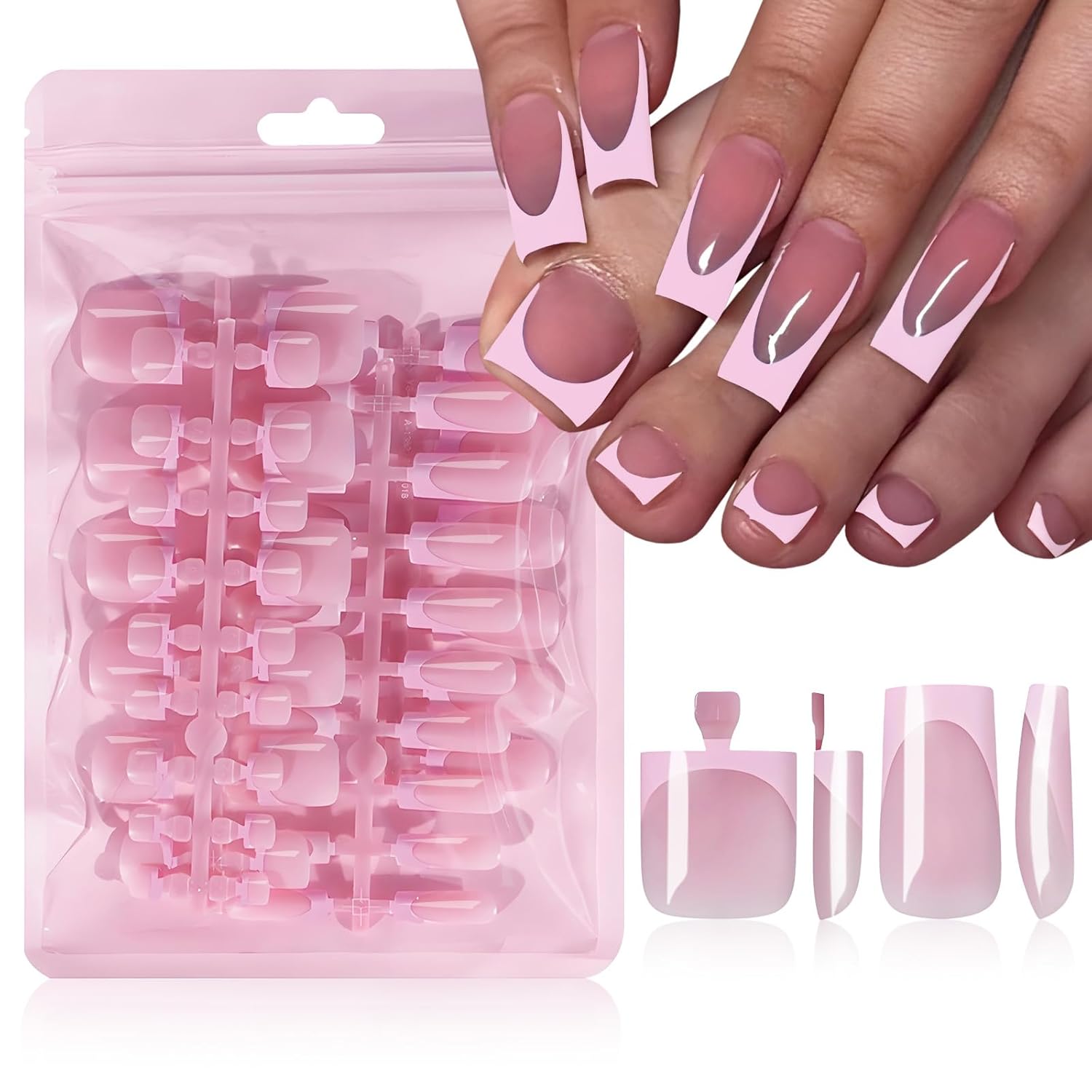 Comfortable Press on Nails Pack: Medium french tip nails press ons square suitable for all nails, square medium press on nails pink french tips provide a snug, natural feel without bulkiness. Medium square french tip press on nails are flexible and won't lift, pink french nail tips ideal for typing, texting, and daily activities. French tip press on nails for women resist chipping and maintain vibrant colors, french press on toe nails offer a professional lasting look. Pink press on toes french tip make you to move freely without worrying about medium nails press ons french tip slipping off.