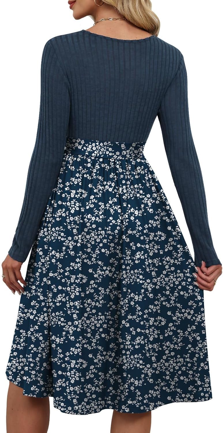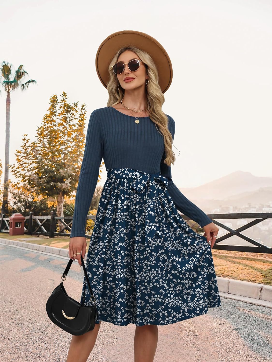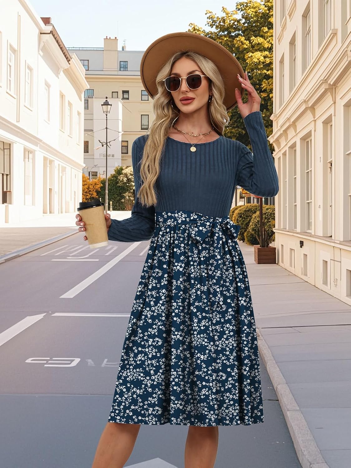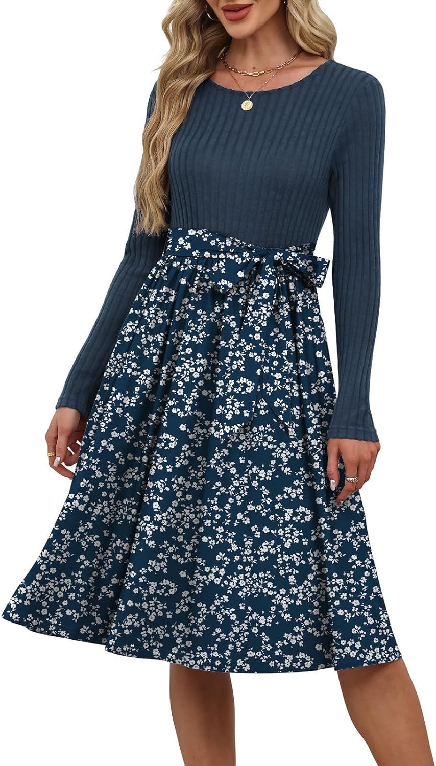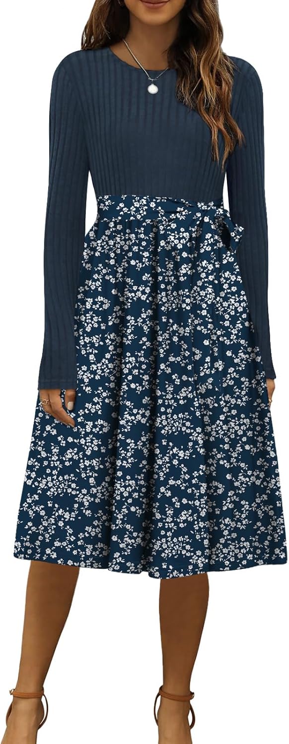 Womens Long Sleeve Knit Tops Boho Maxi Sweater Dress Tie Waist Elegant Fall Winter Dresses