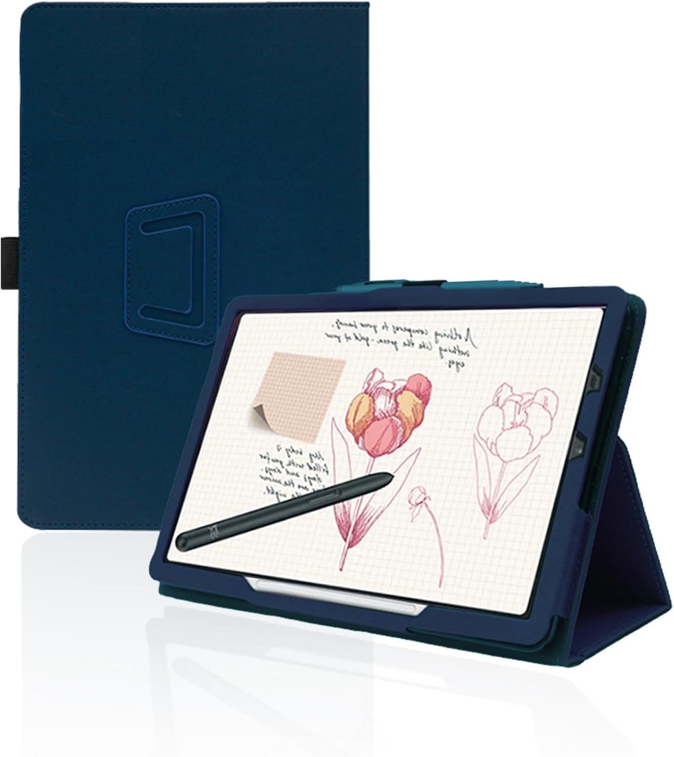 for XP-Pen Magic Note Pad 10.95 Inch Android Tablet Case,BOVUGAC Folding Stand Protective Cover with Pencil Holder and Wrist Strap,Full Protection, Premium PU,Scratch Resistant(Dark Blue)