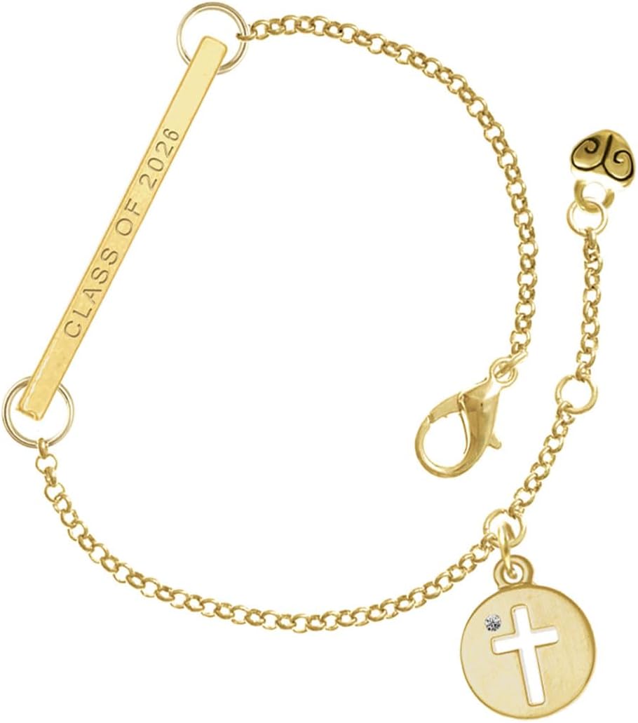 Delight Jewelry Plated Cross Silhouette - Silvertone Class of 2026 Delicate Bar Bracelet, 8.5"