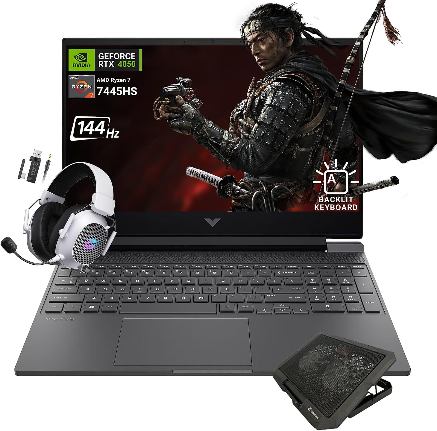 HP Victus 15.6" FHD 144Hz Gaming Laptop, AMD Ryzen 7 7445HS, NVIDIA GeForce RTX 4050, 64GB DDR5 RAM, 2TB PCIe 4.0 SSD, Backlit KB, Copilot, Silver, Bundle with Mytrix Accessories