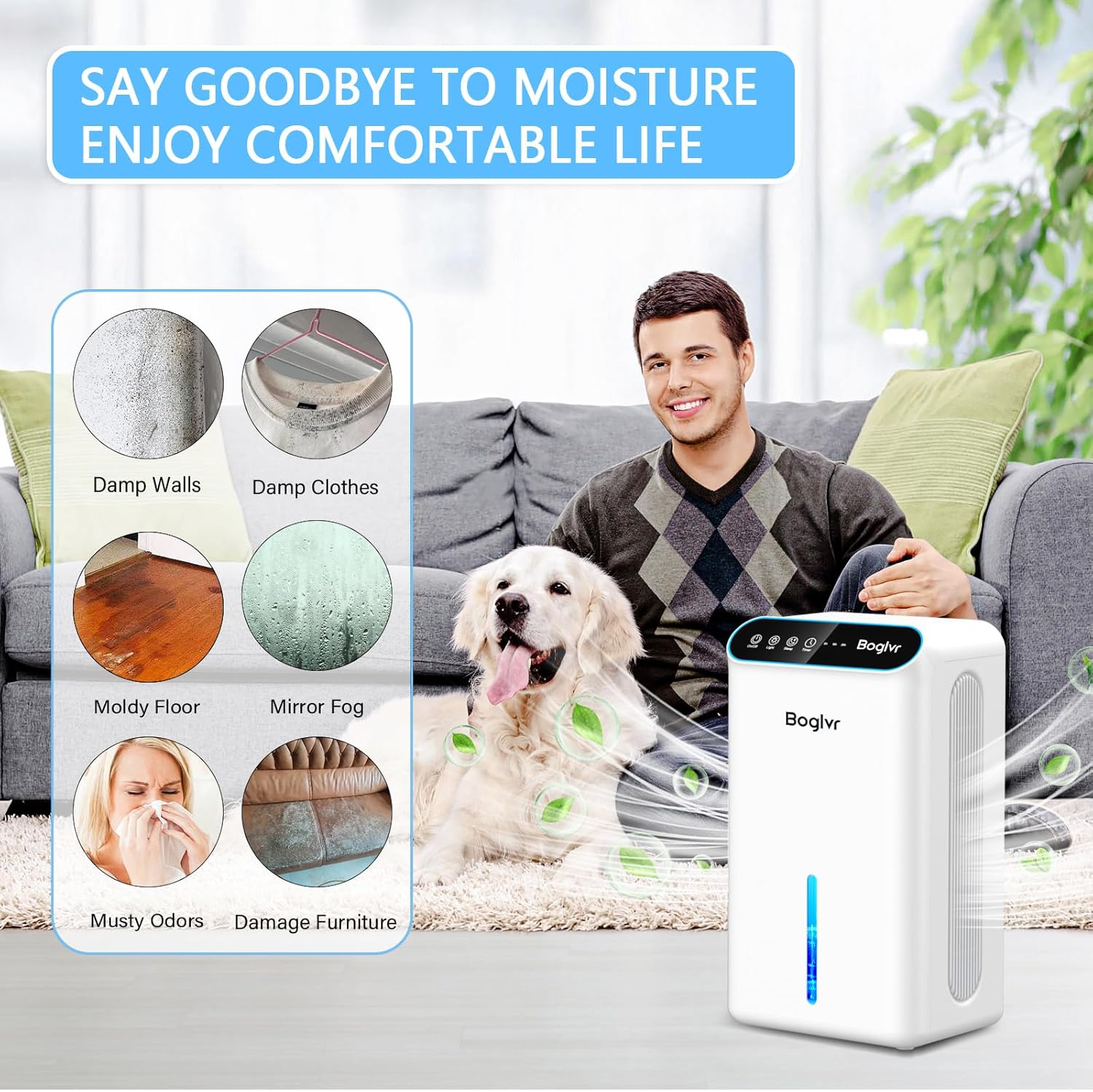 【Day & Sleep Mode with Ultra-Quiet Performance】Enjoy two operating modes for flexible use. Day Mode provides strong moisture removal during active hours, while Sleep Mode lowers fan speed and keeps noise levels below 30 dB for a calm and quiet atmosphere. Perfect for nurseries, home offices, and light sleepers, this quiet unit runs smoothly without disturbing your rest or work.
