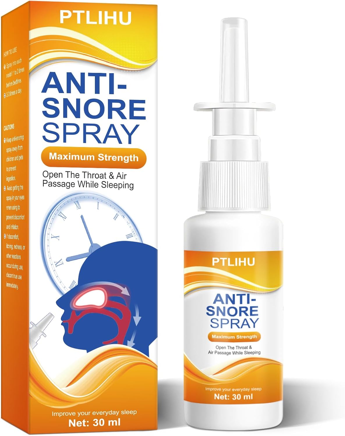 Anti snoring spray can effectively stop snoring and help you breathe easily. It helps reduce and eliminate snoring, also improves various problems caused by snoring, such as dry mouth, stuffy nose, memory loss, etc. Say goodbye to sleepless nights and loud snoring that disturbs your family! HOW TO USE 1. Clean your nose. 2. Spray into each nostril 1 to 2 times before bedtime. 3. Quick snoring cessation for comfortable sleep. CAUTIONS 1. Keep anti-snoring spray away from children and pets to prevent ingestion. 2. Avoid getting the spray in your eyes when using to prevent discomfort and irritation. 3. If discomfort, itching, redness, or other reactions occur during use, discontinue use immediately.
