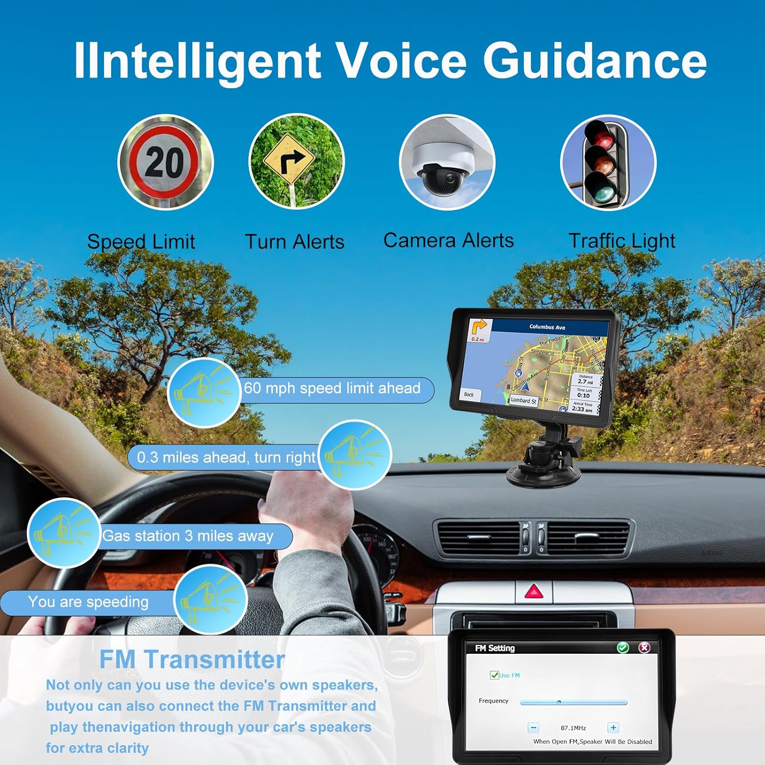 【Real-time Traffic Updates】Preloaded offline maps with free lifetime updates. Syncs with Apple Maps/Google Maps for voice-guided directions, speed alerts, and traffic jam avoidance.